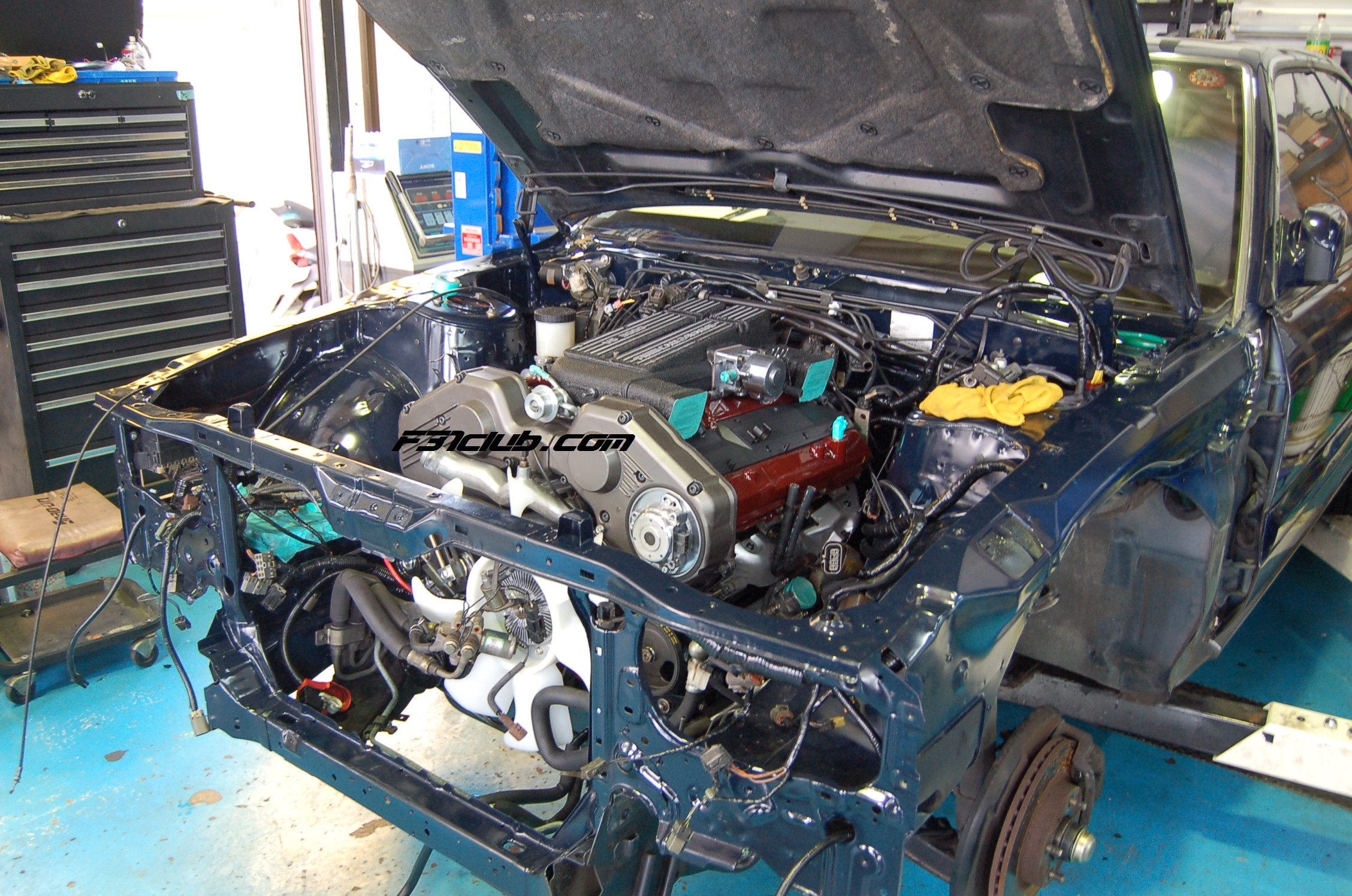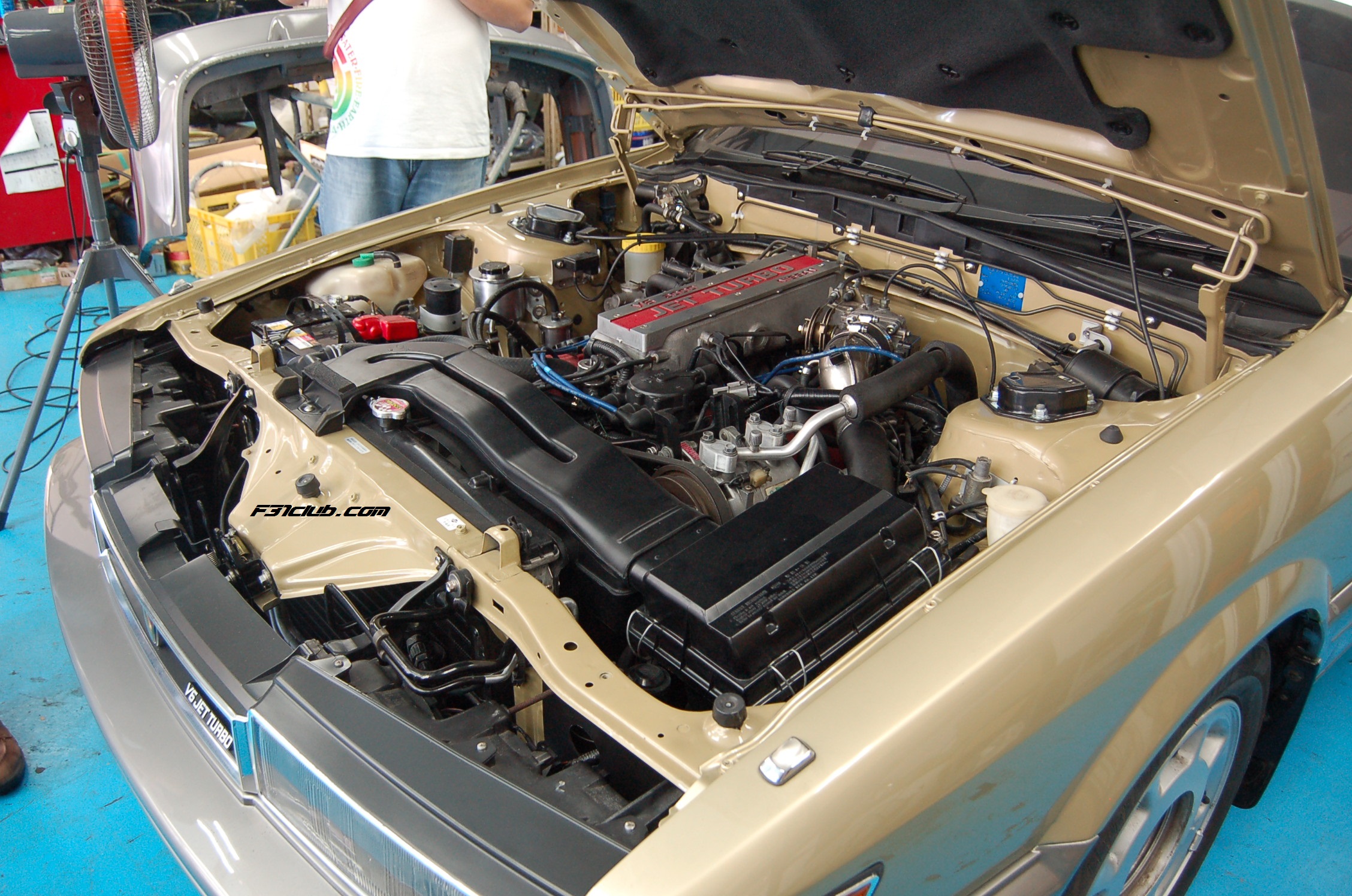 I initially snapped pictures from far away and outside. I did not want to go in the garage and start taking pictures. I wanted to make sure it was okay. Satoru lead me to the office and Mr. Kanazawa came down! He shook my hand and gave me his business card. Mr. Kanazawa spoke only Japanese (again, Satoru was my translator). I asked if it was okay to take pictures of the leopards in the repair garage. There were a few F31s and also a Y31.