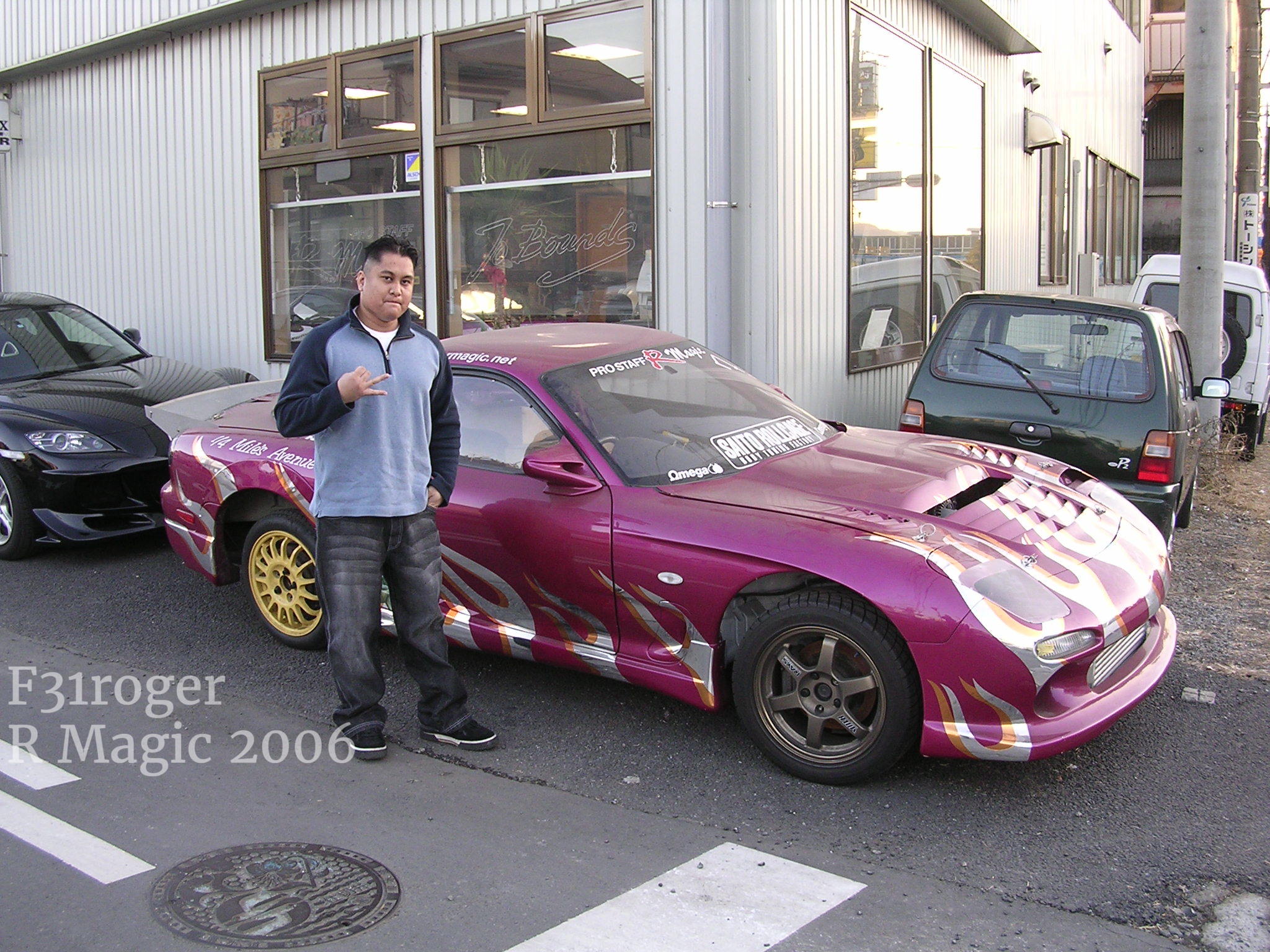 Megesan knew I was into RX7s and I was on the hunt for the FC RX7 parts. So he took me to R Magic. We stopped by here and I talked to the owner for a bit. He let me go around and look at their cars! Too Awesome! I bought their FC3S headlight kit.