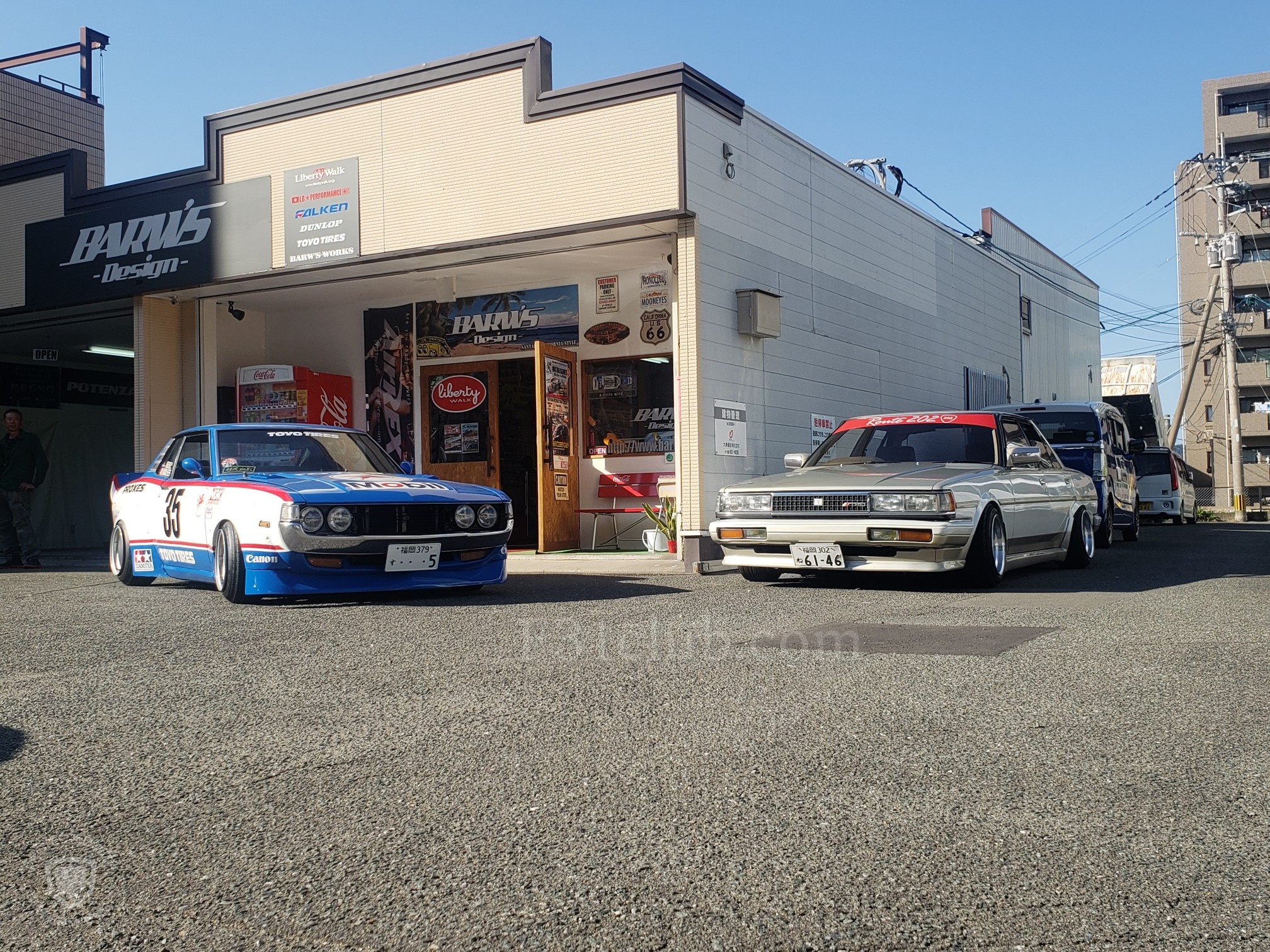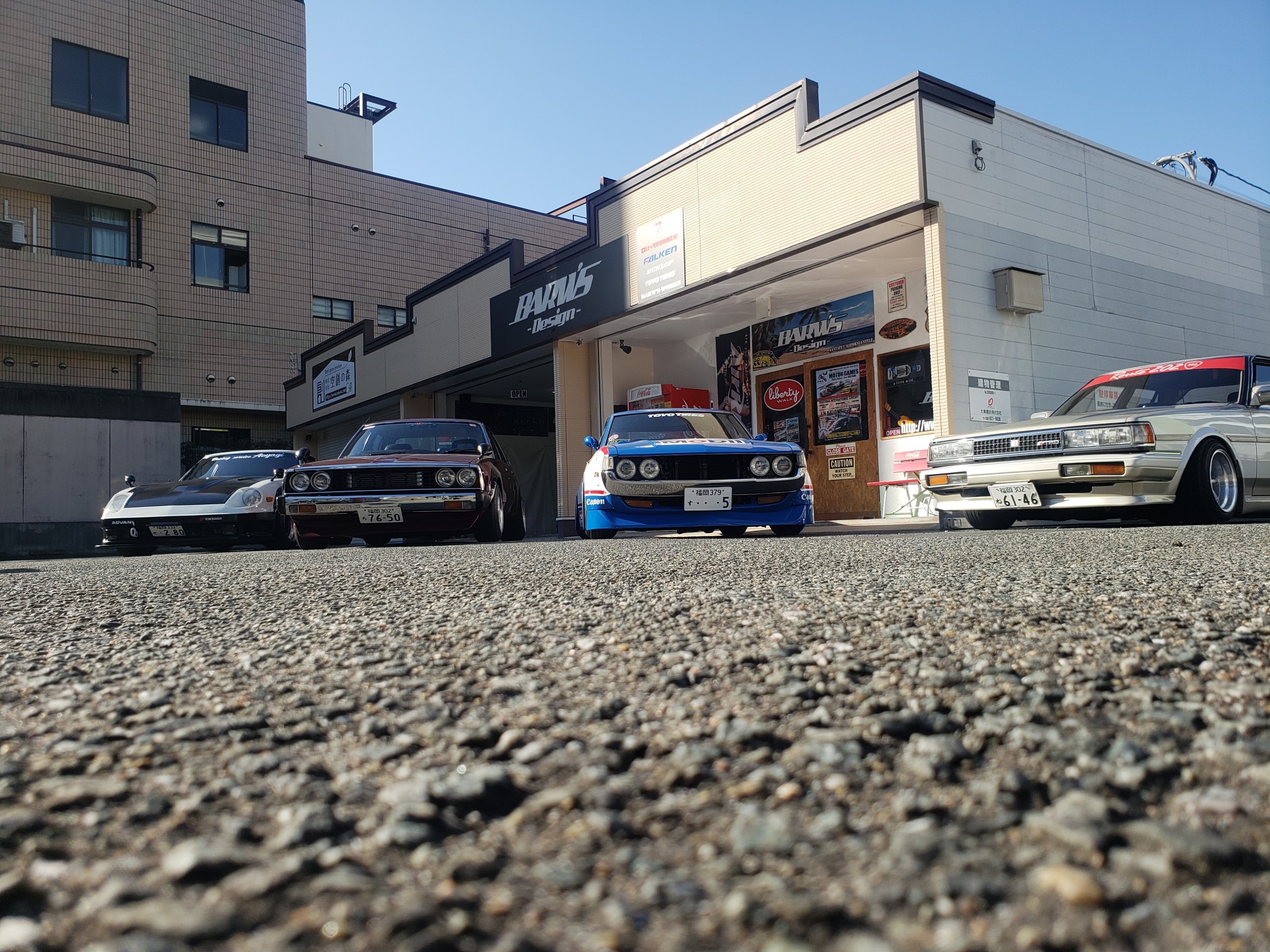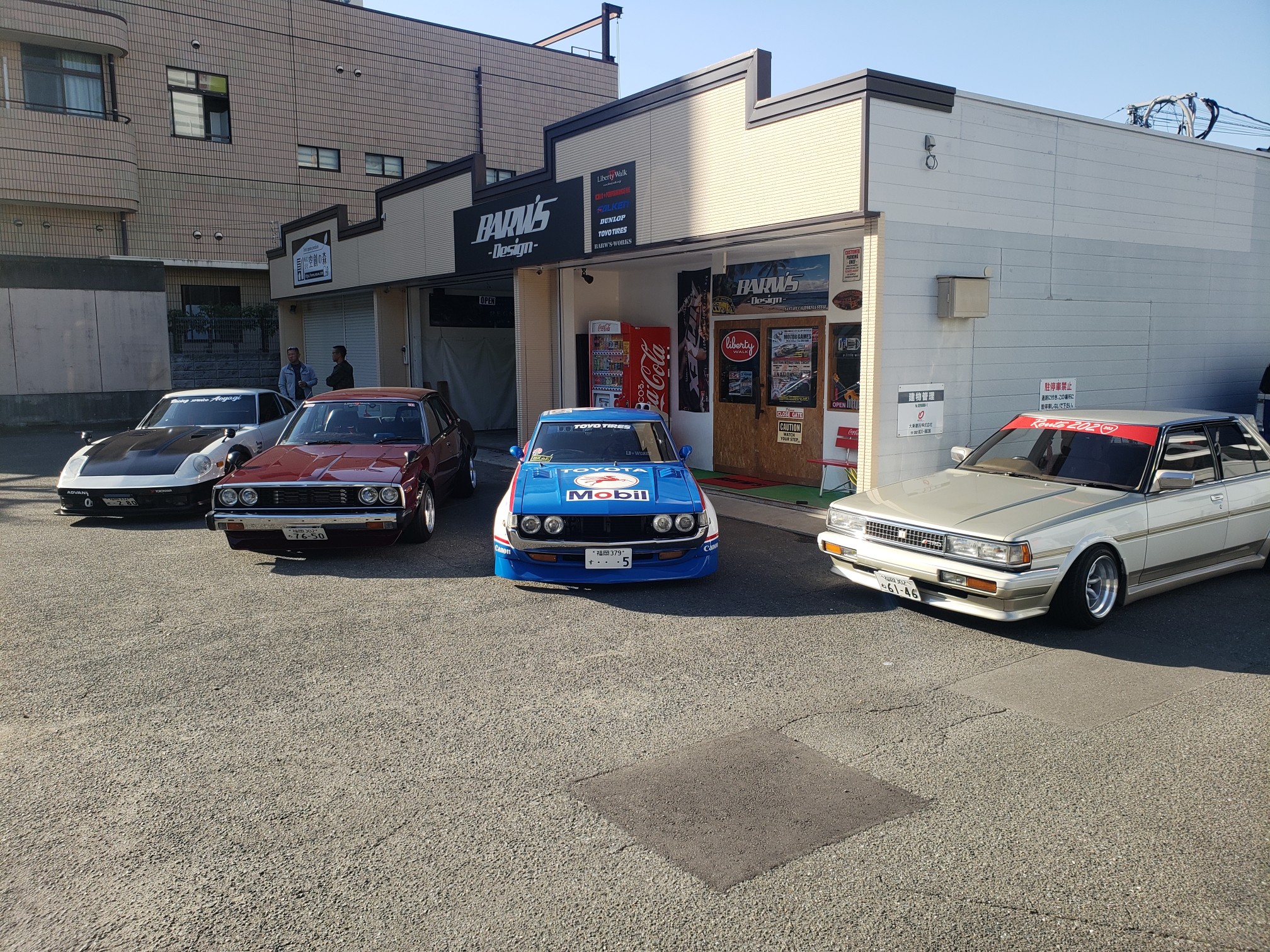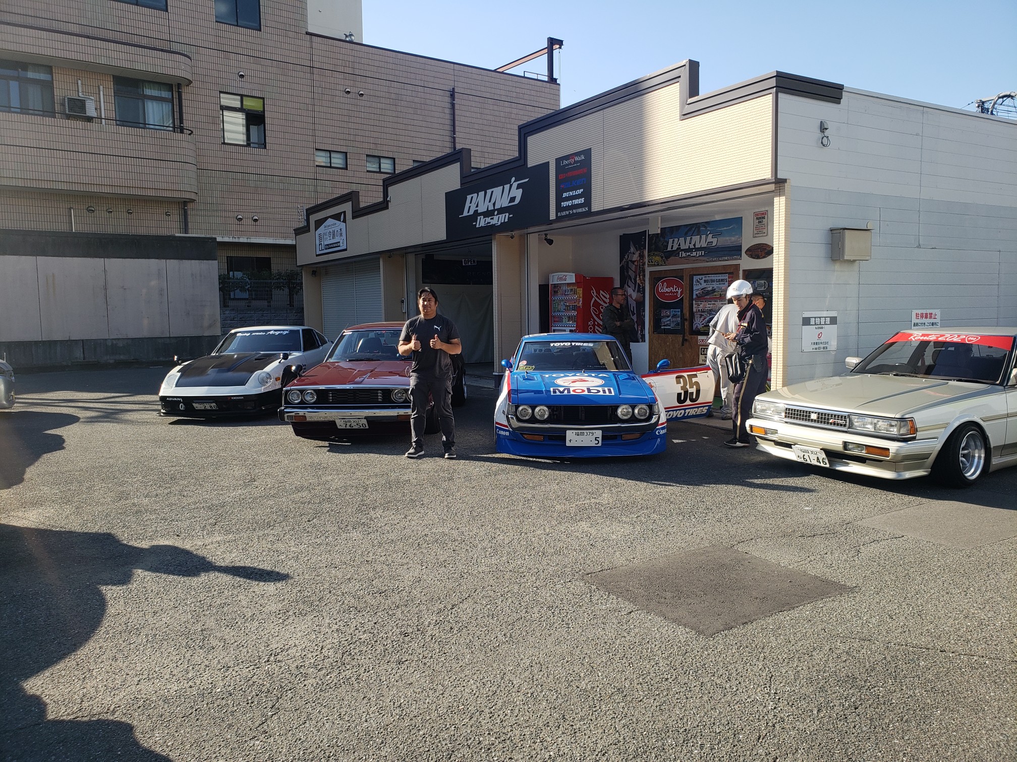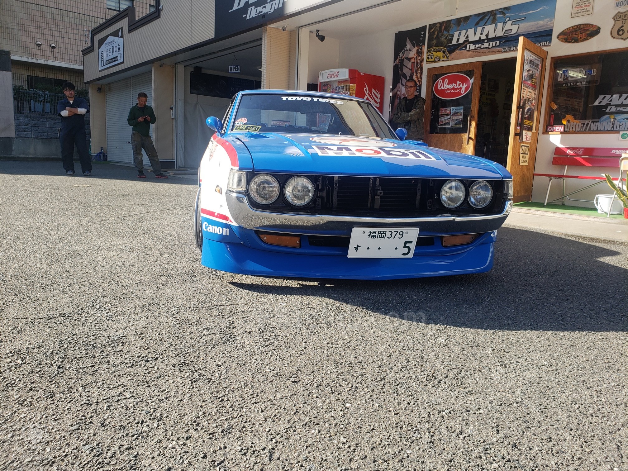 After a brief spirited drive, we arrived at Barw’s Design. It was a tuning shop that Hirokawa-san owns. He opened his garage and showed his Celica to me. He then said he will bring it out. Another one of their friends rolled up in his Skyline. It was just getting cooler every second. Hirokawa-san offered everyone drinks and after the cars lined up, everyone started to take pictures!
