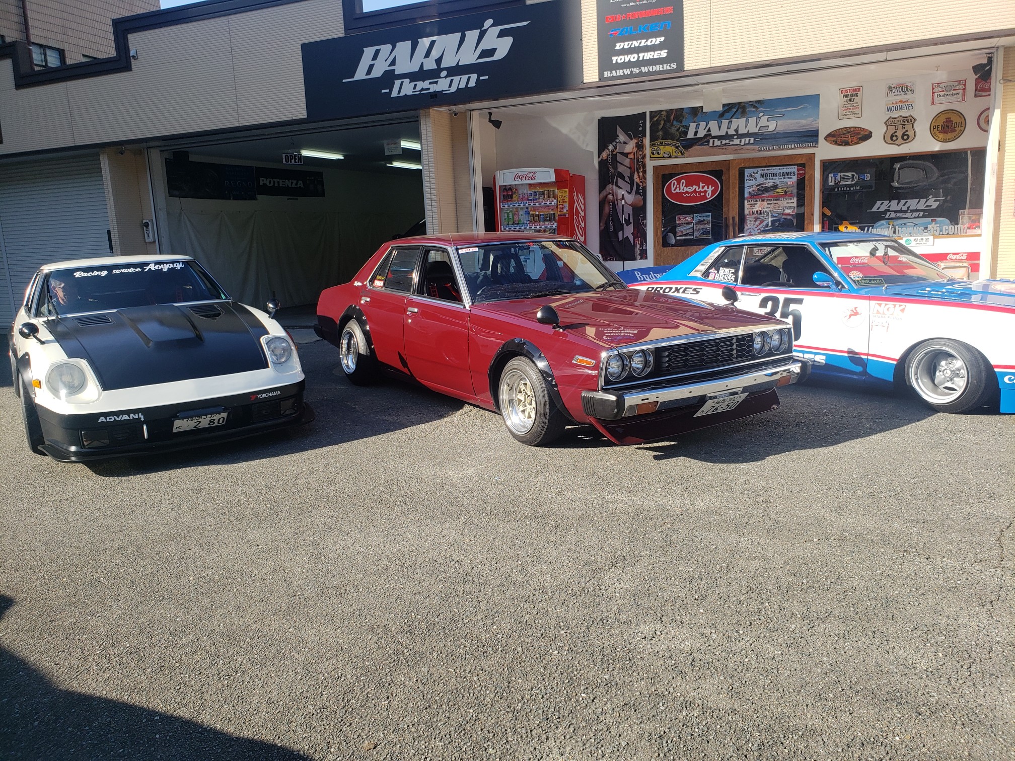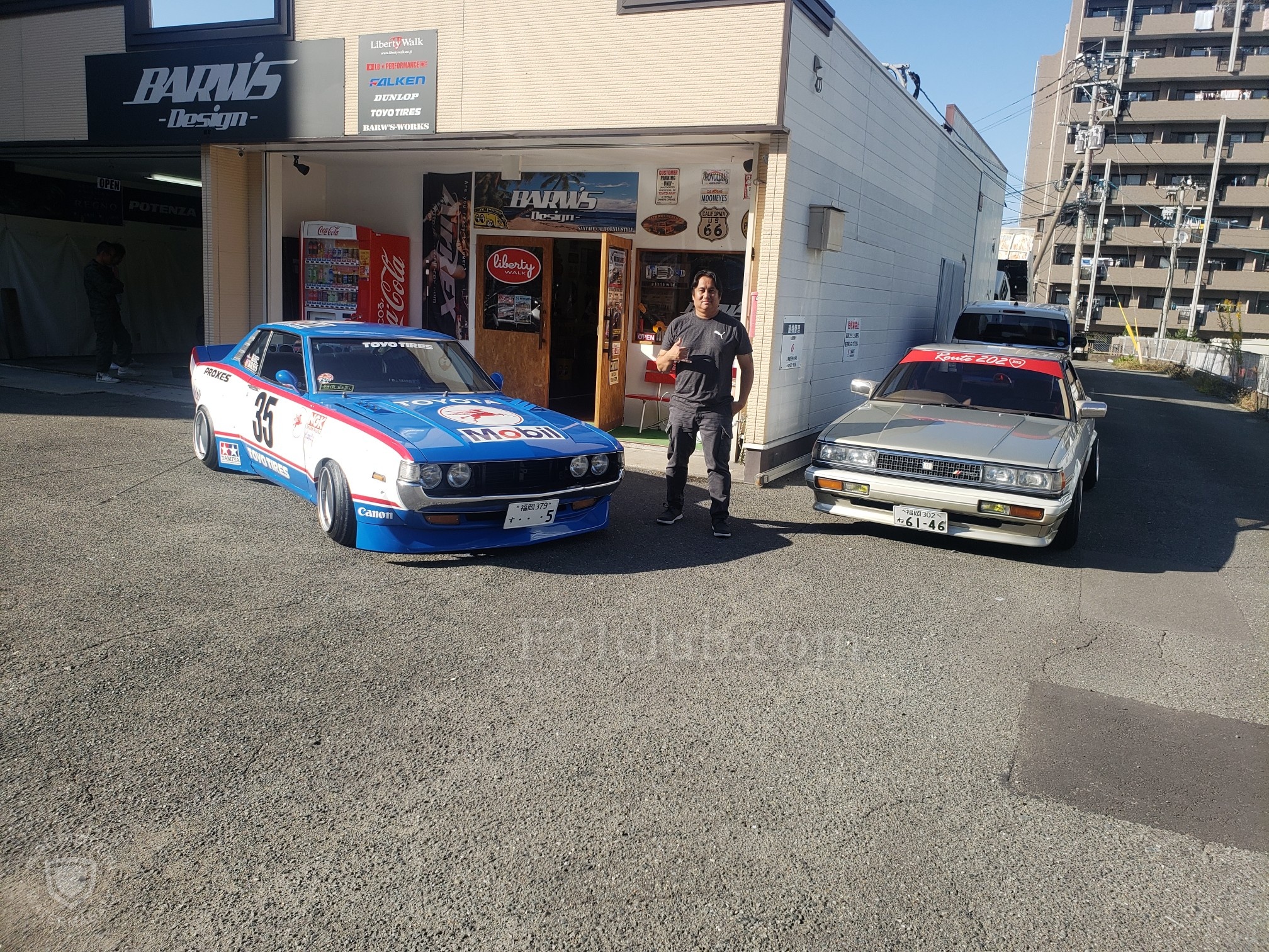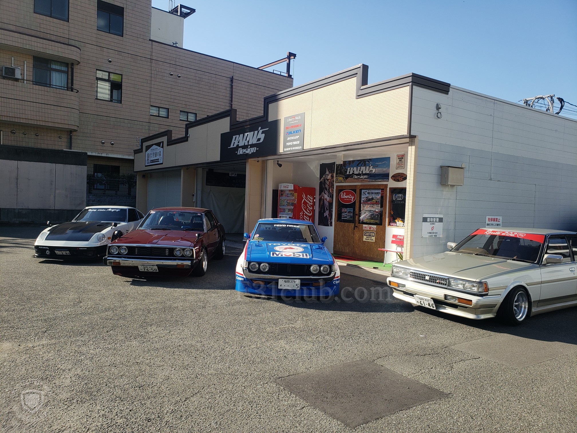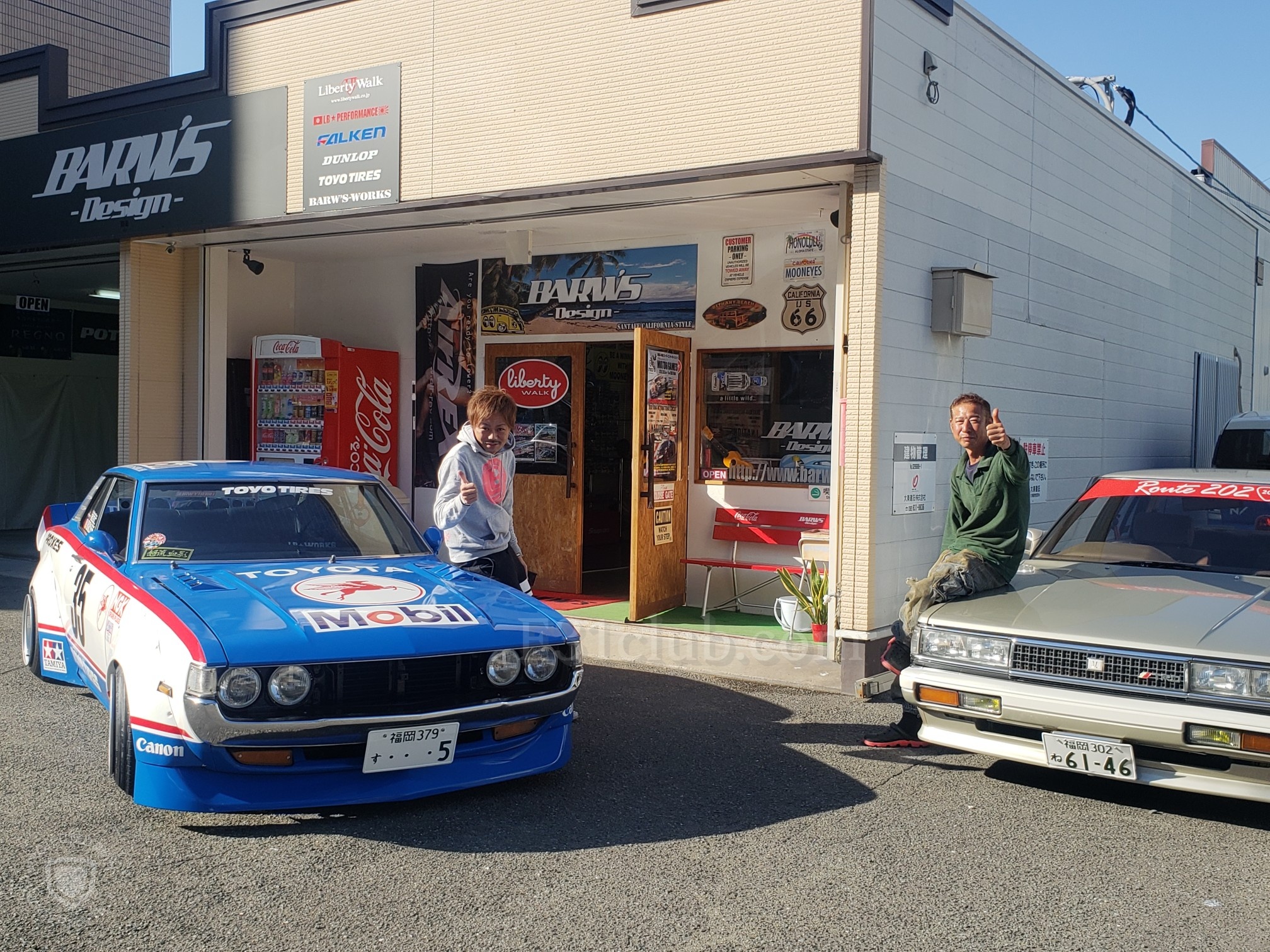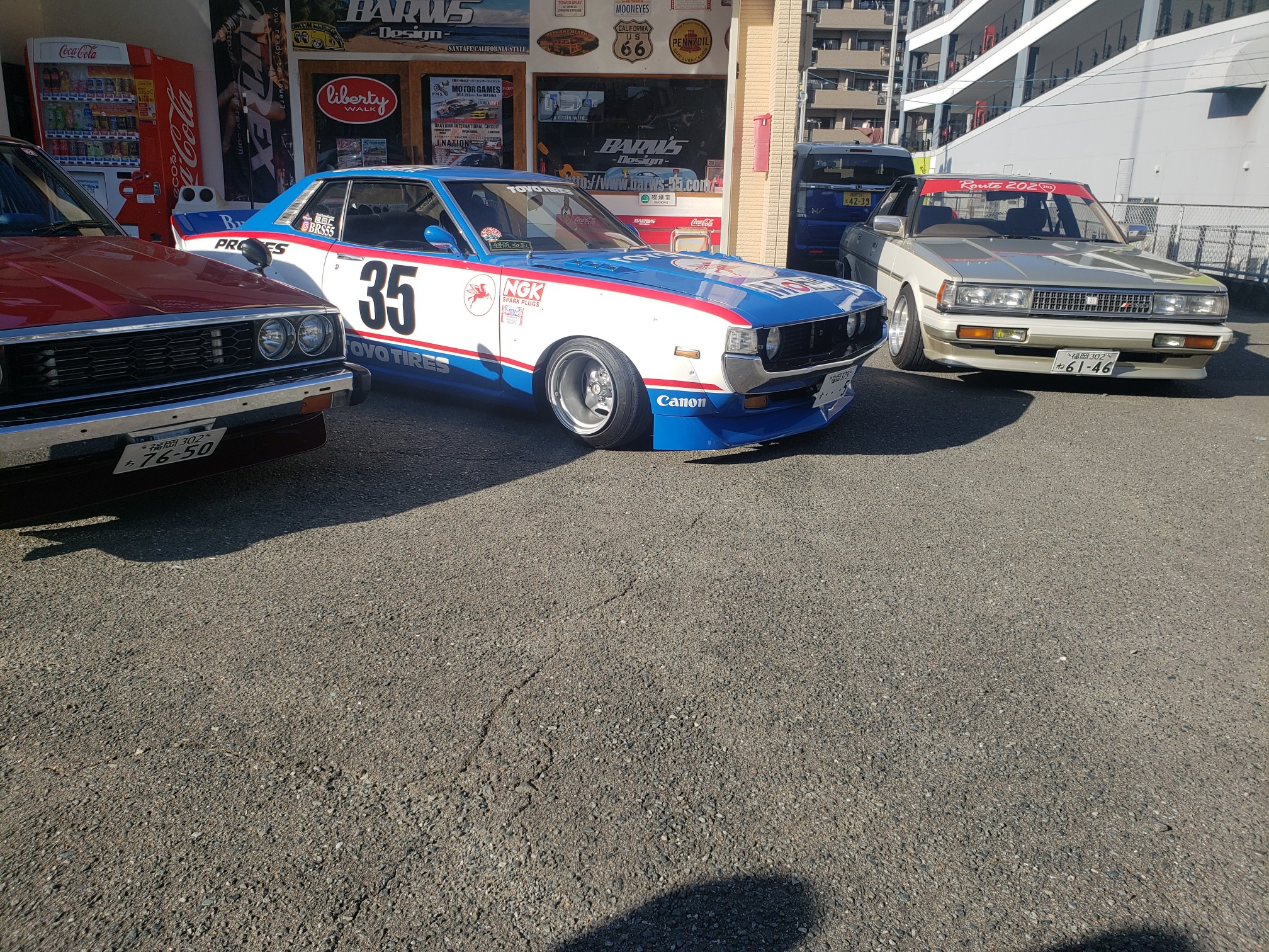 After a brief spirited drive, we arrived at Barw’s Design. It was a tuning shop that Hirokawa-san owns. He opened his garage and showed his Celica to me. He then said he will bring it out. Another one of their friends rolled up in his Skyline. It was just getting cooler every second. Hirokawa-san offered everyone drinks and after the cars lined up, everyone started to take pictures!