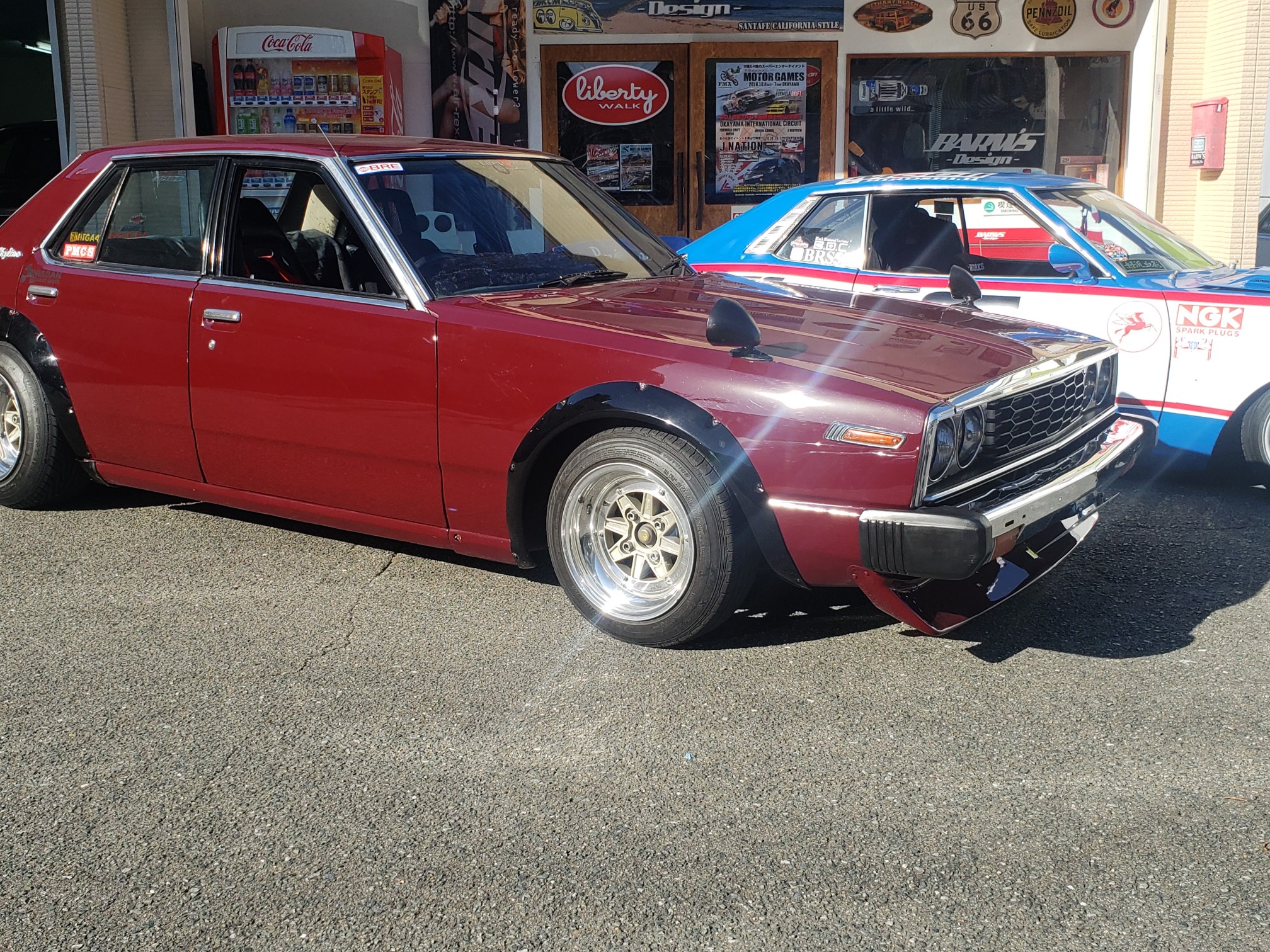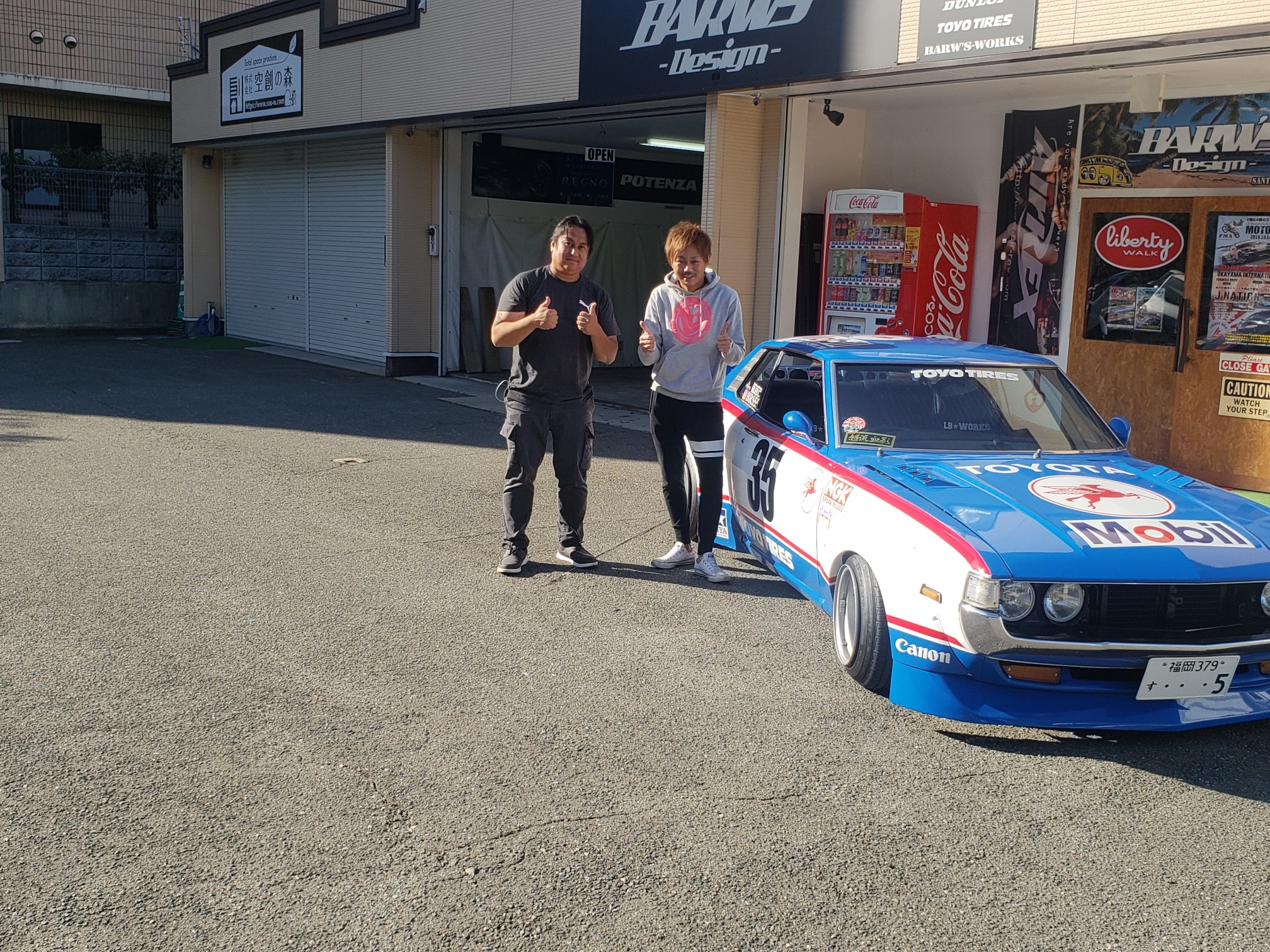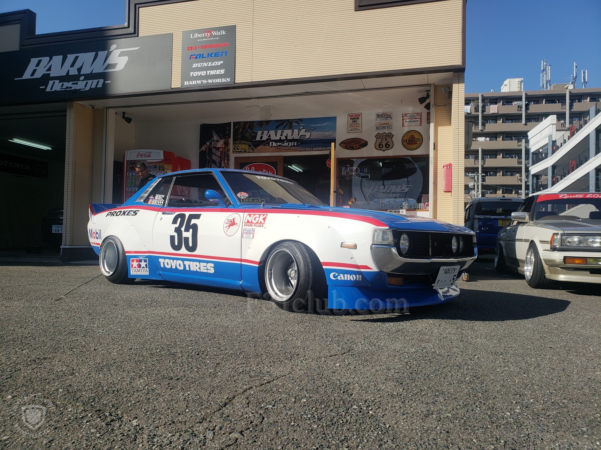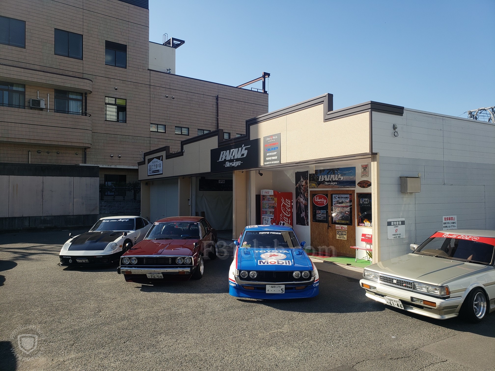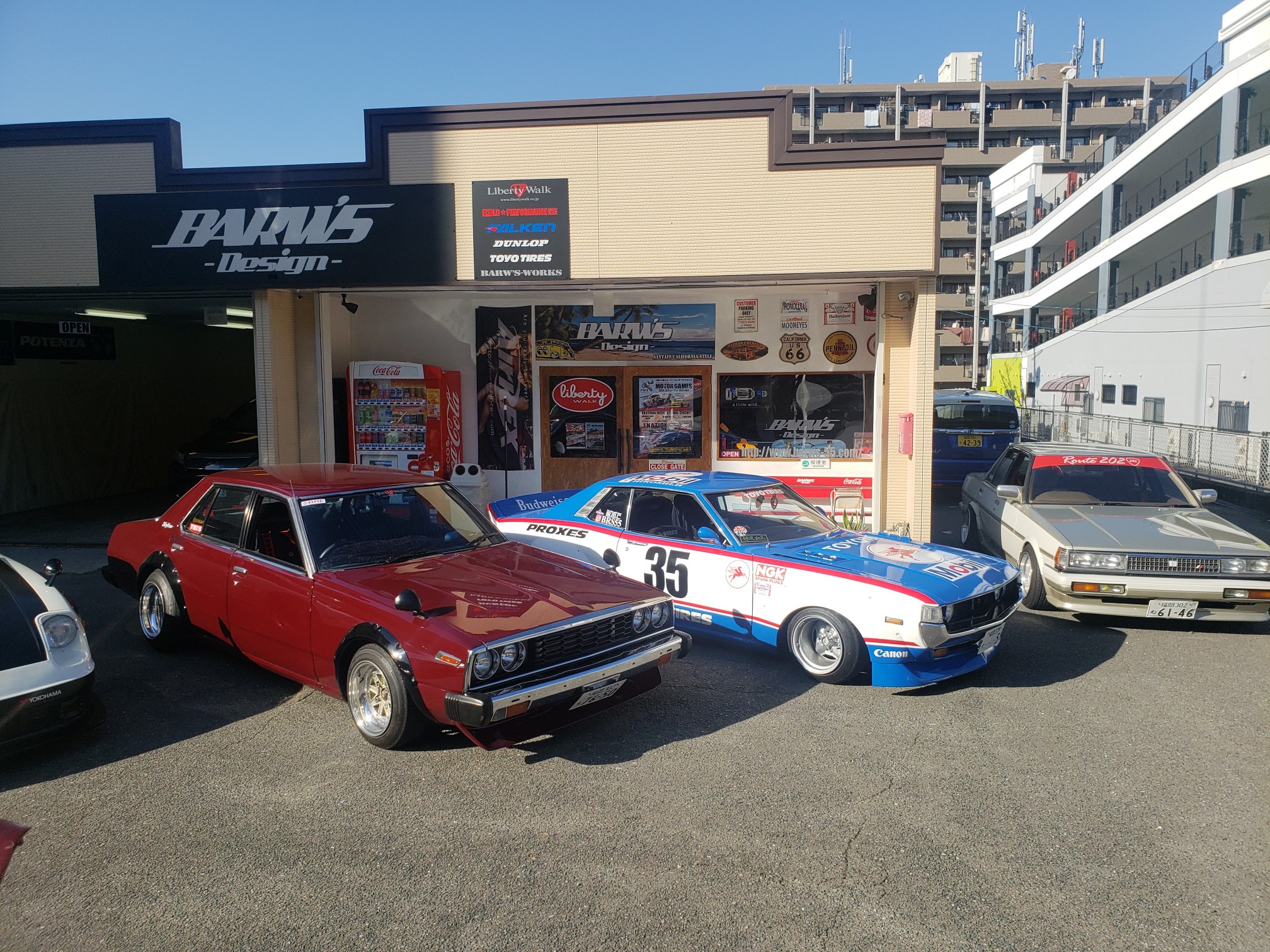 After a brief spirited drive, we arrived at Barw’s Design. It was a tuning shop that Hirokawa-san owns. He opened his garage and showed his Celica to me. He then said he will bring it out. Another one of their friends rolled up in his Skyline. It was just getting cooler every second. Hirokawa-san offered everyone drinks and after the cars lined up, everyone started to take pictures!