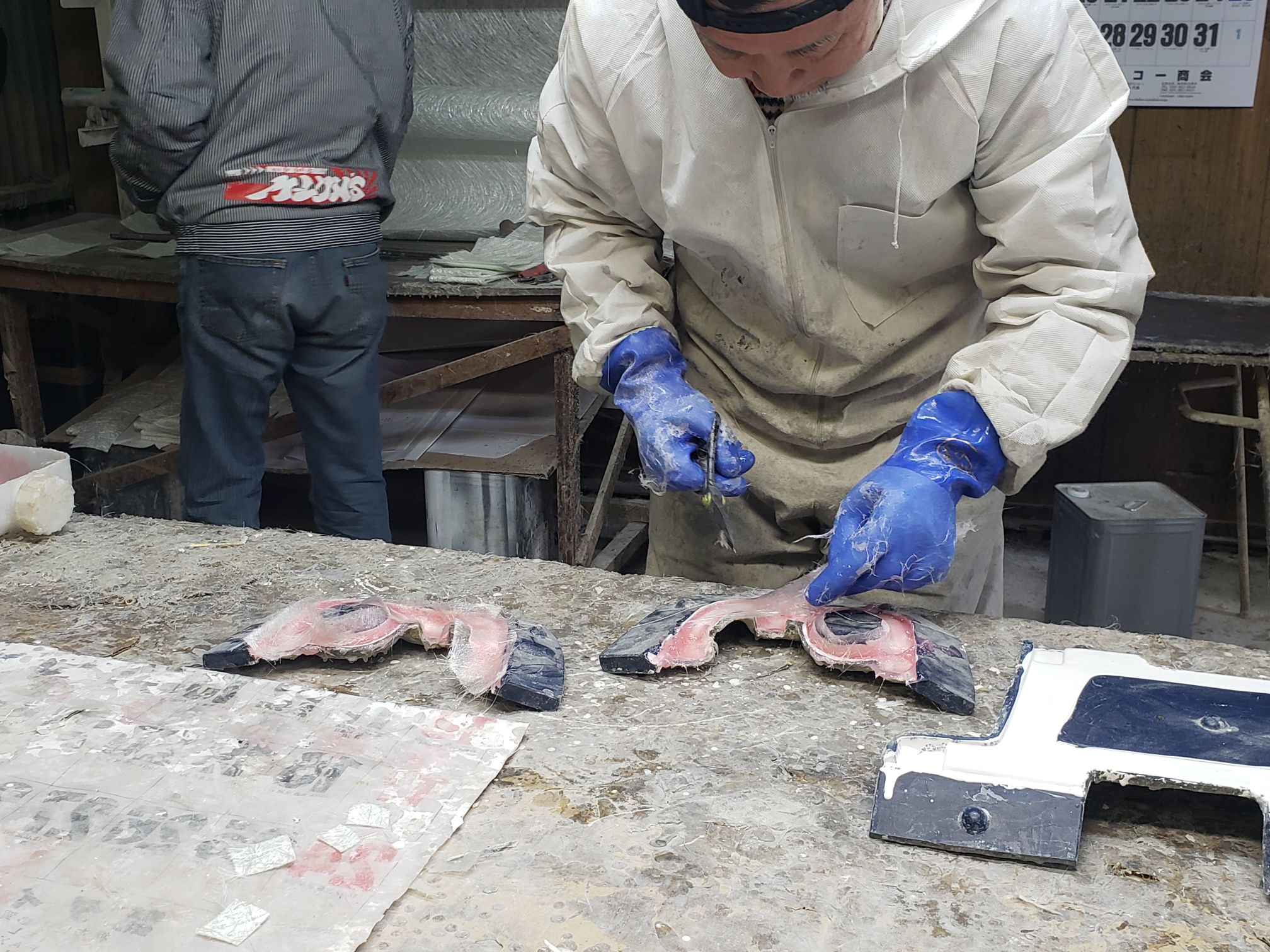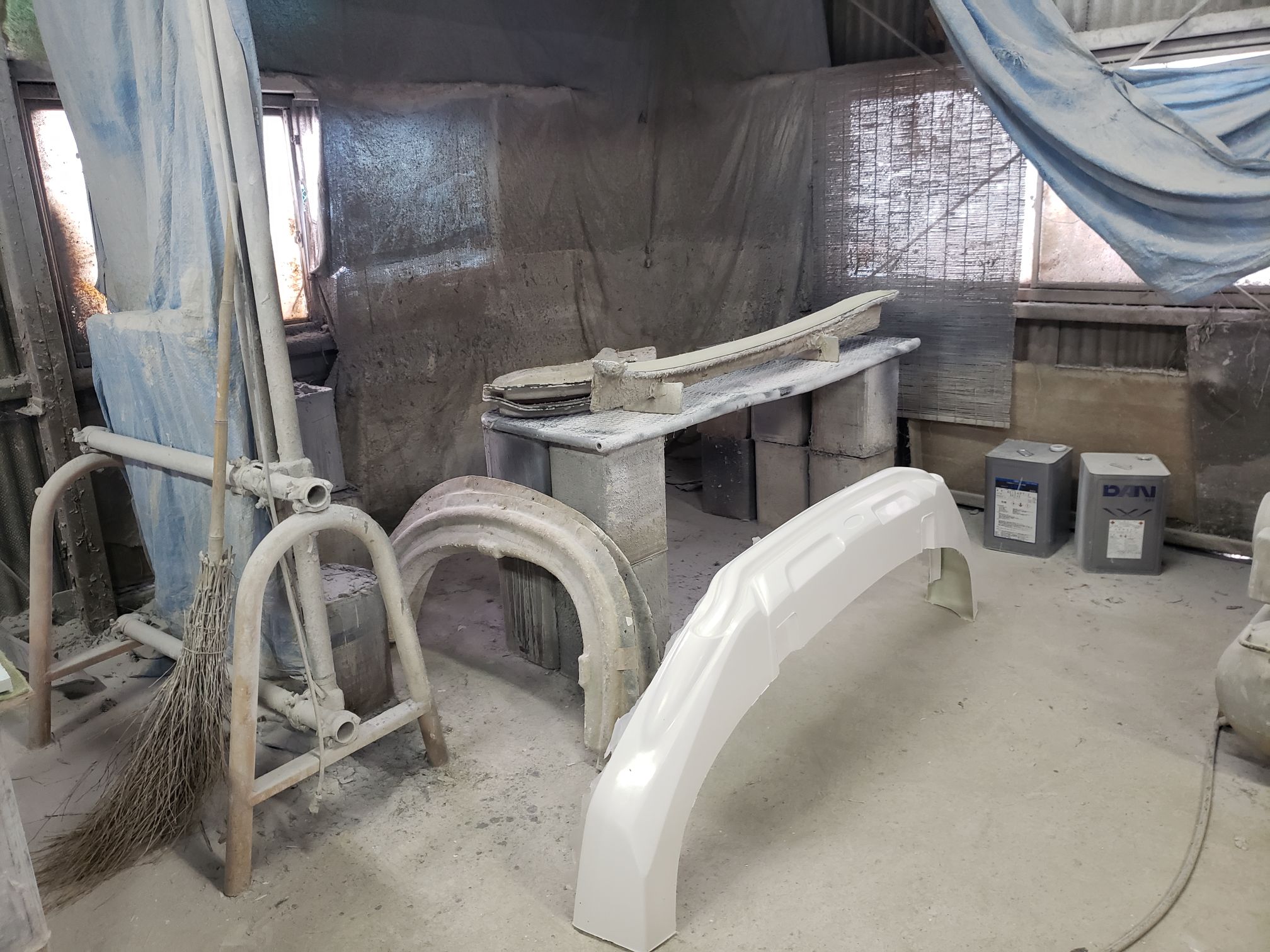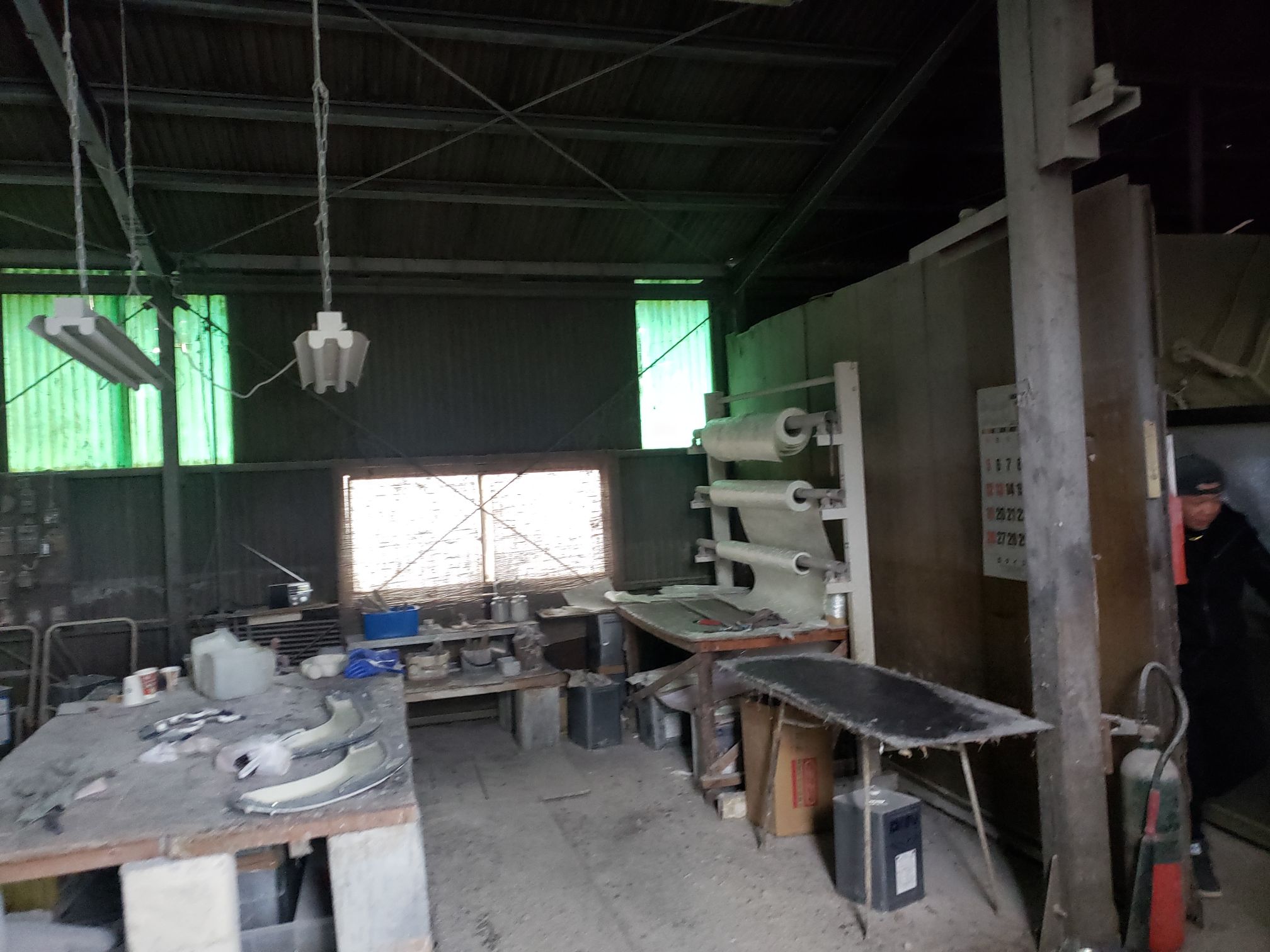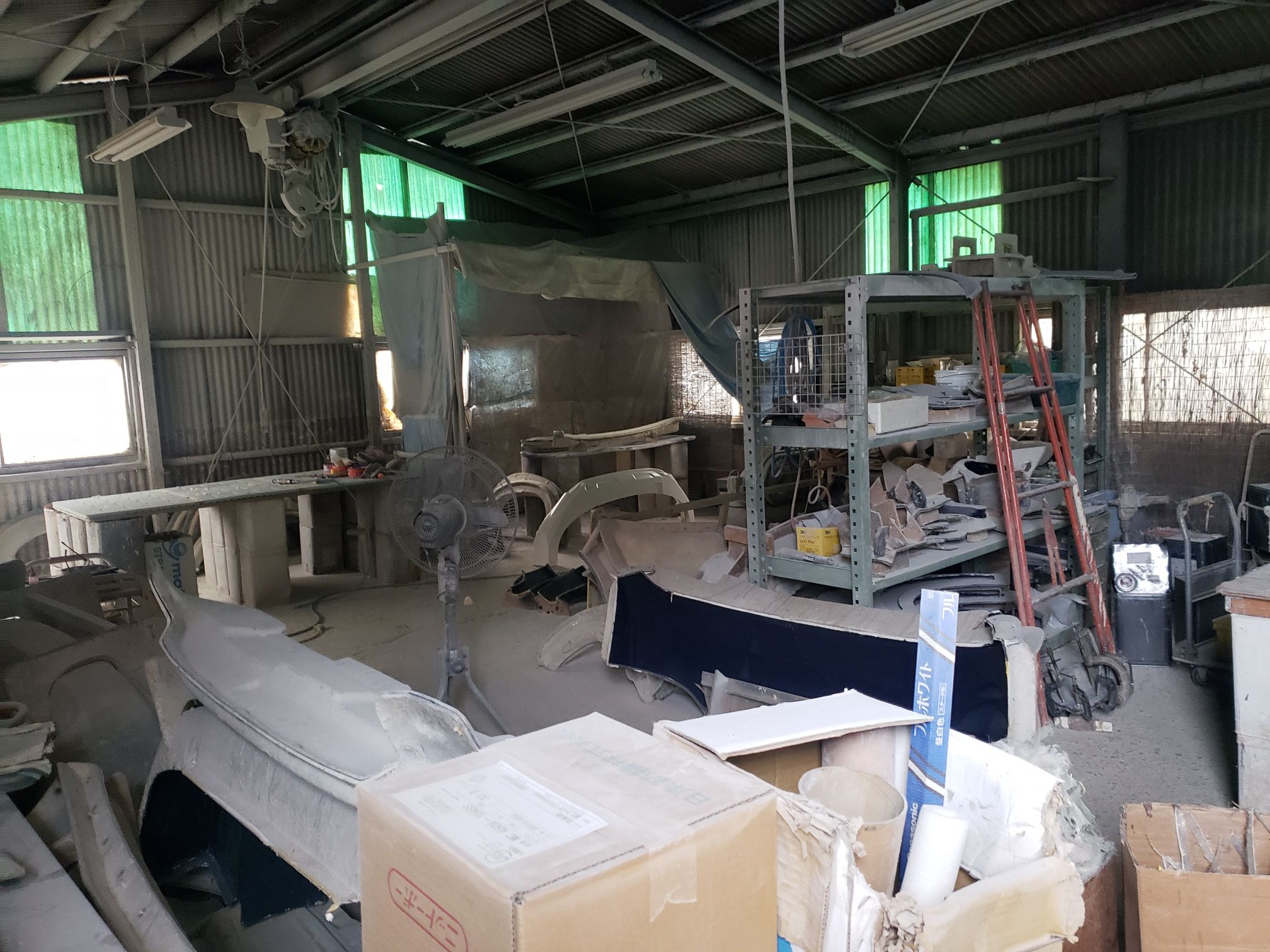 Ogawara-san drove to this location. It was right off the road and the you see what looks like a mid sized shack. The owner opens up the garage and it is a full fiberglassing operation!!!