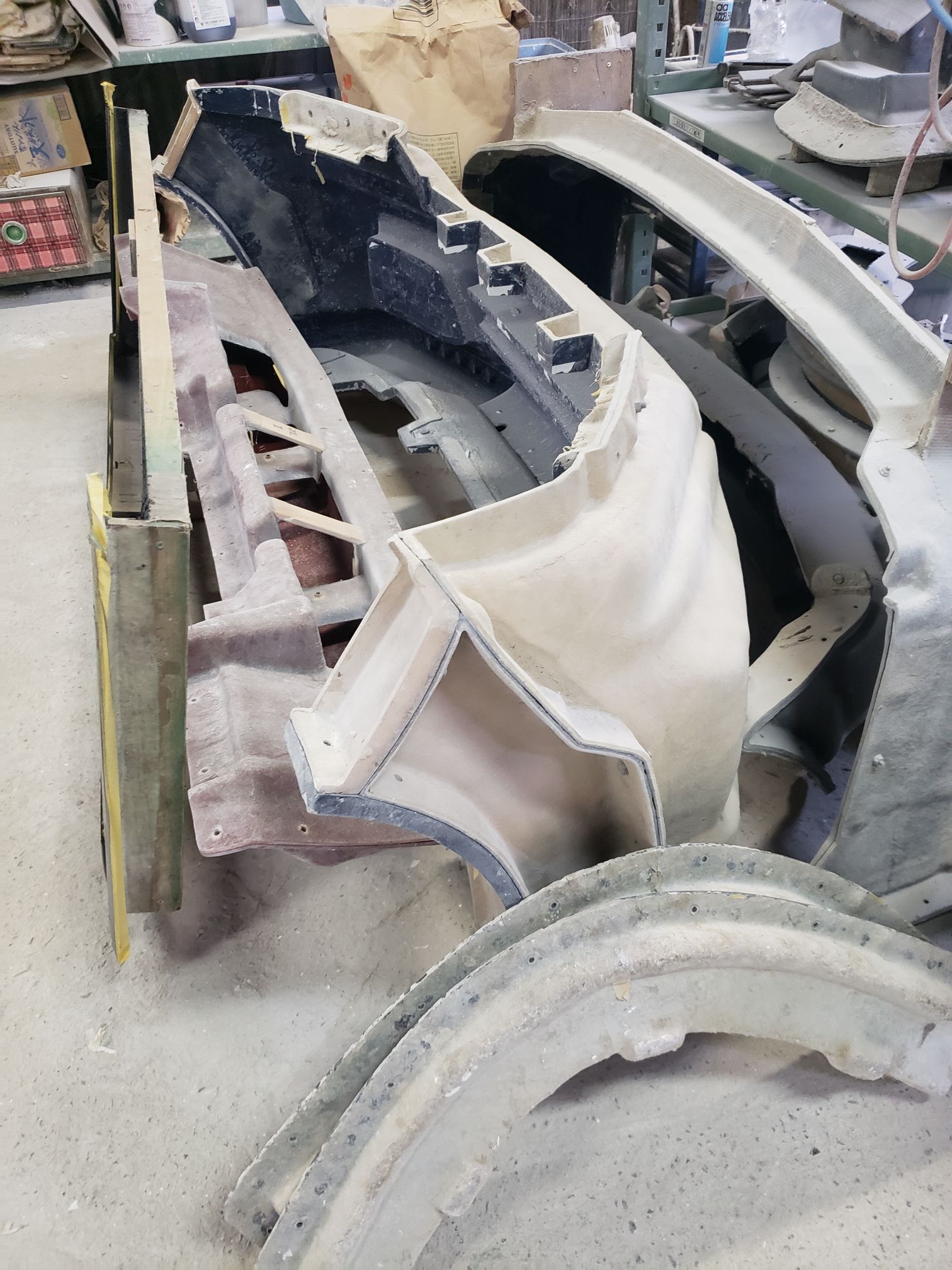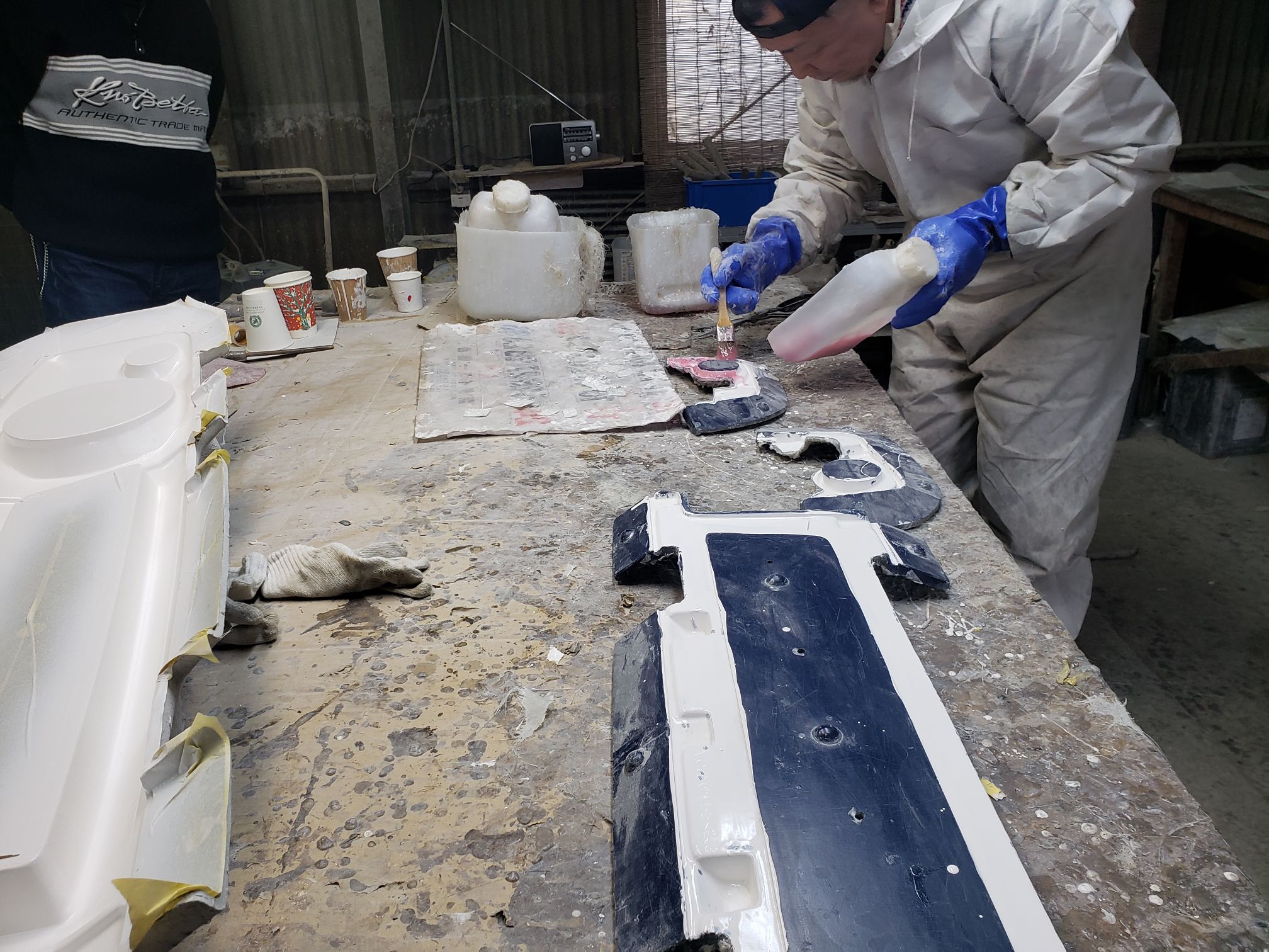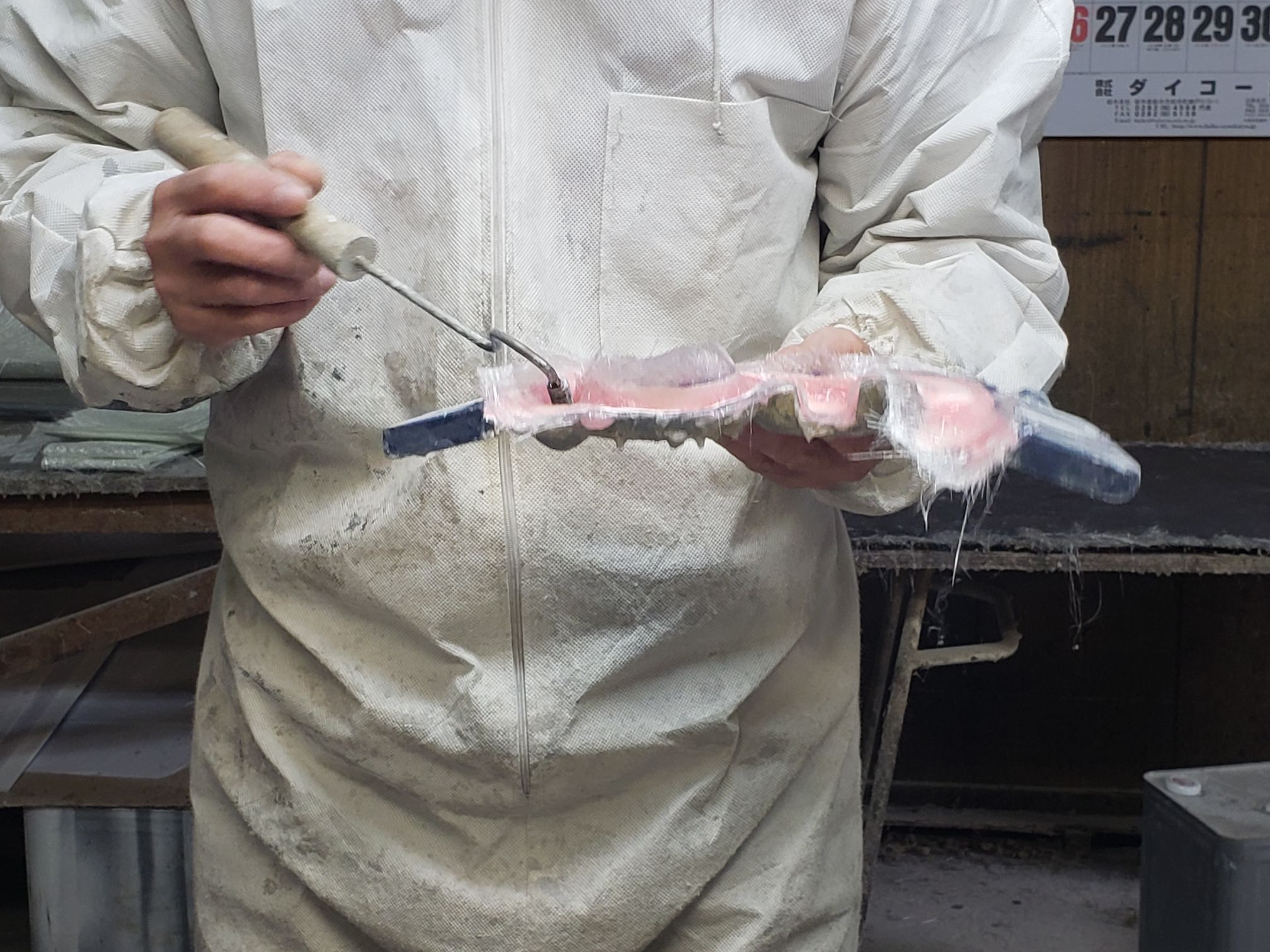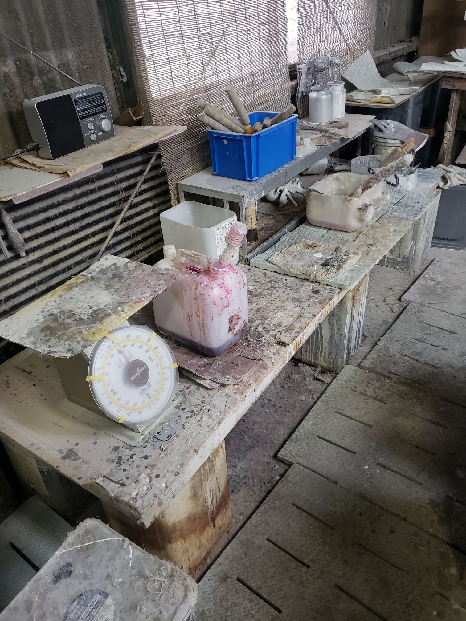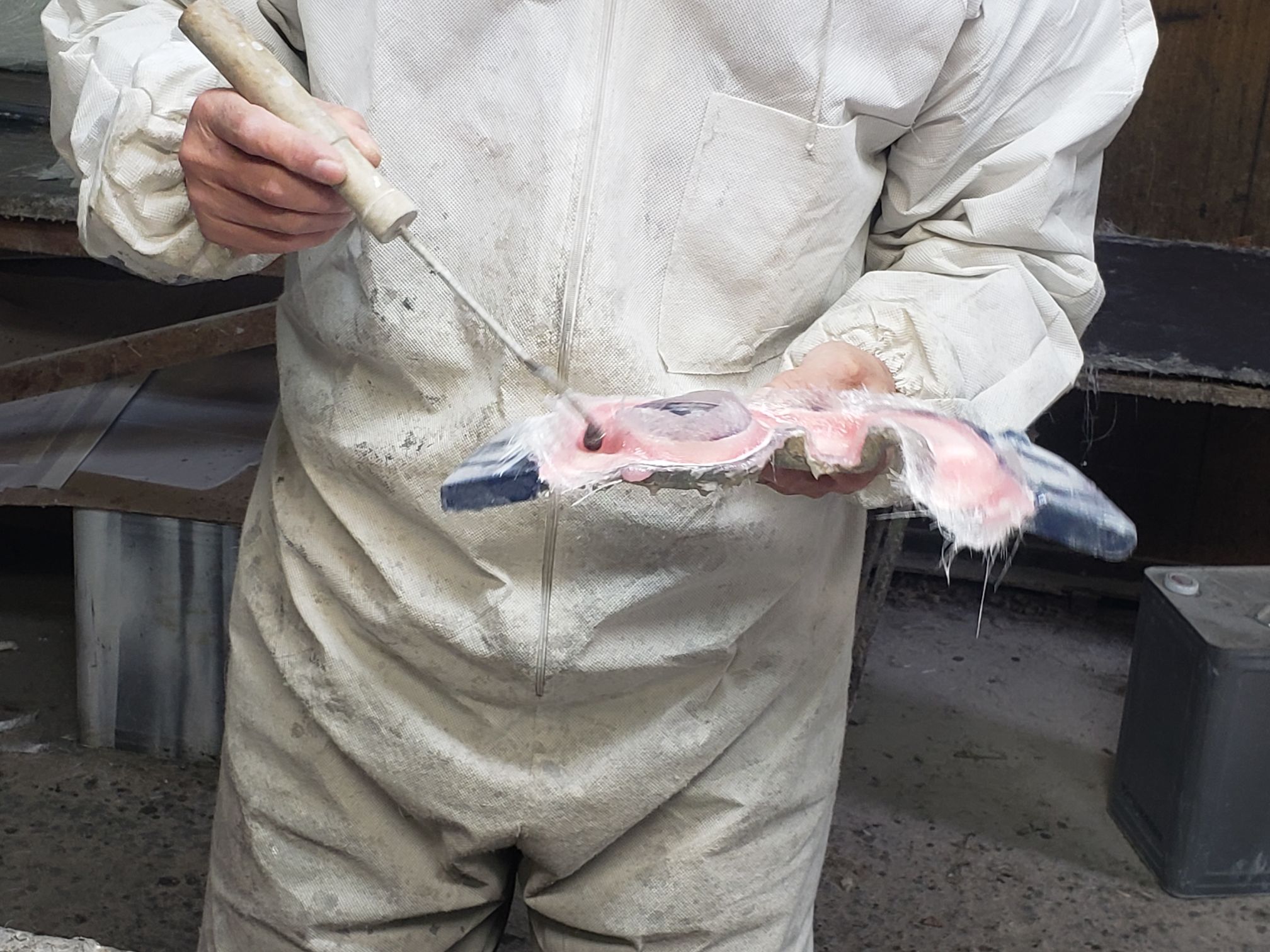 Ogawara-san drove to this location. It was right off the road and the you see what looks like a mid sized shack. The owner opens up the garage and it is a full fiberglassing operation!!!