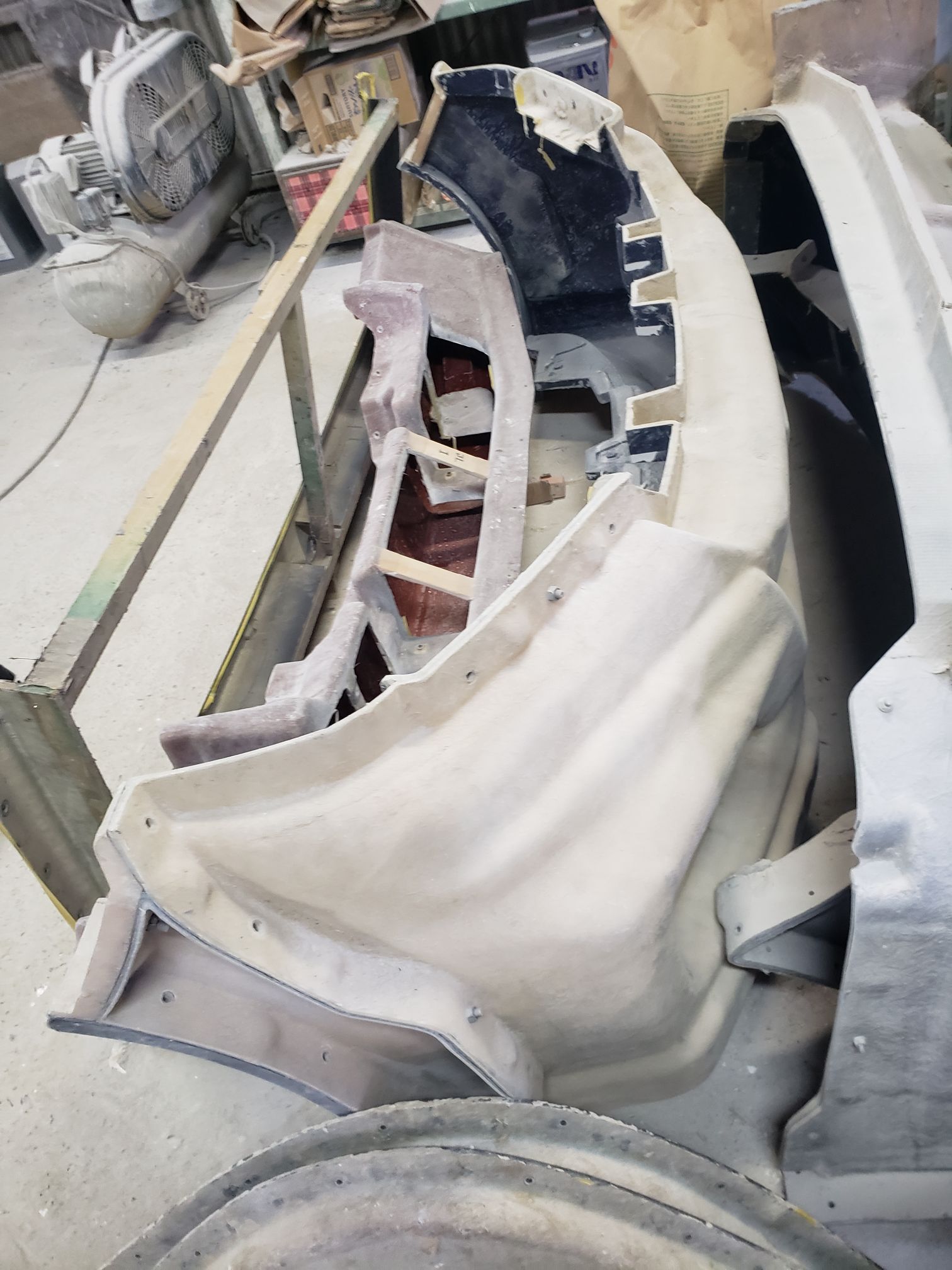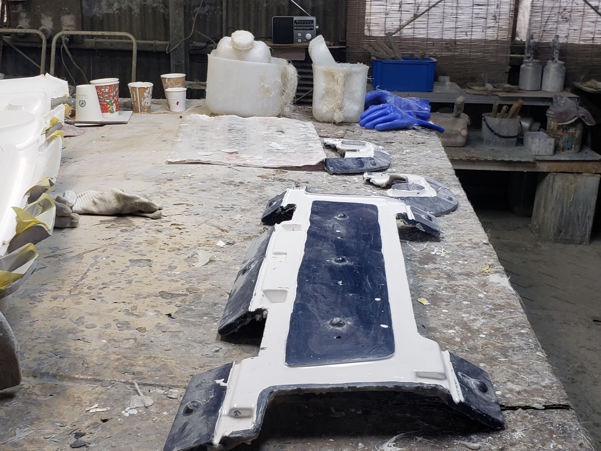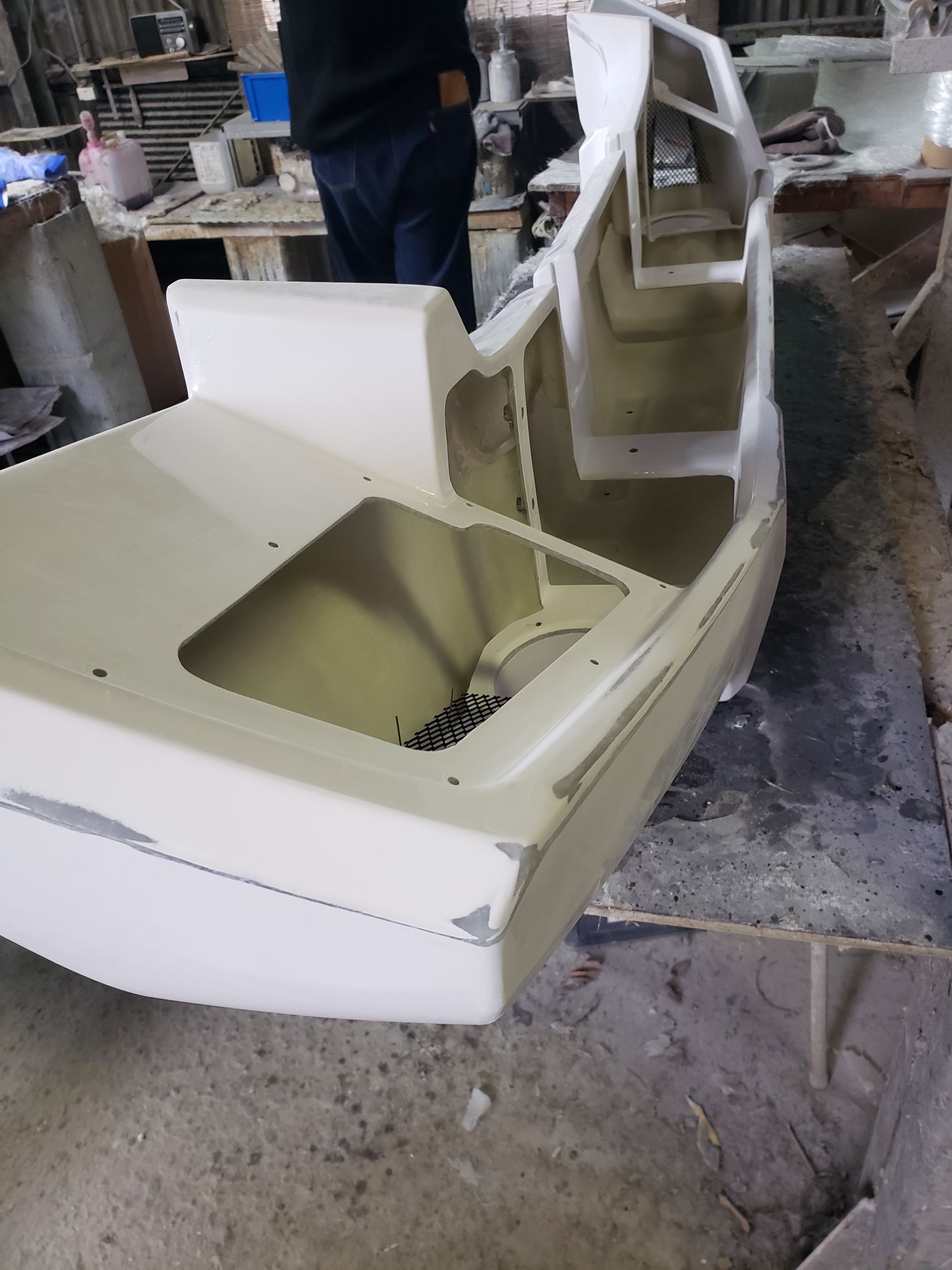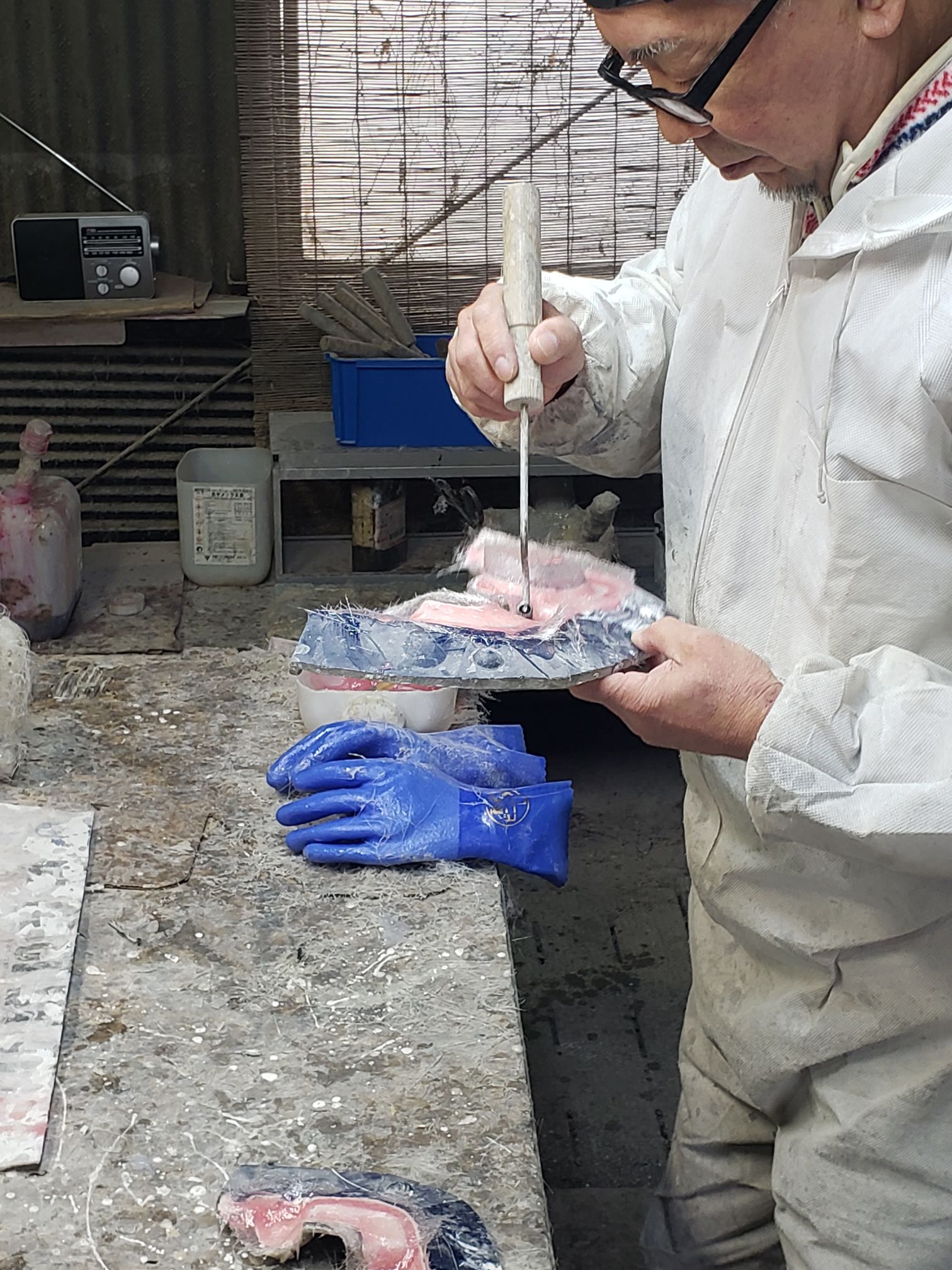 Ogawara-san drove to this location. It was right off the road and the you see what looks like a mid sized shack. The owner opens up the garage and it is a full fiberglassing operation!!!