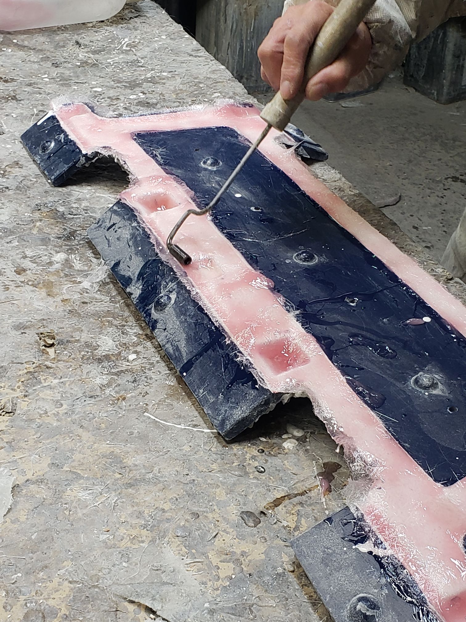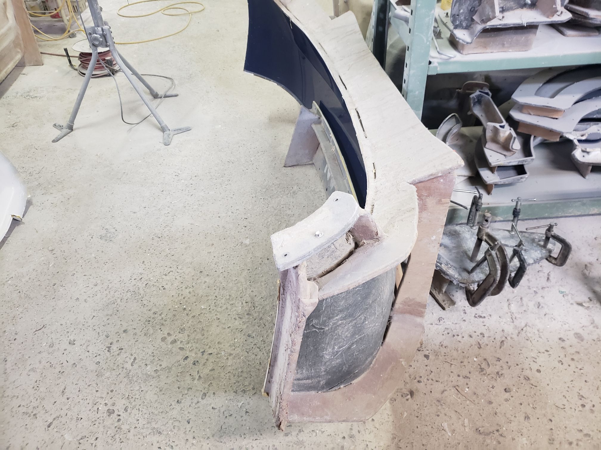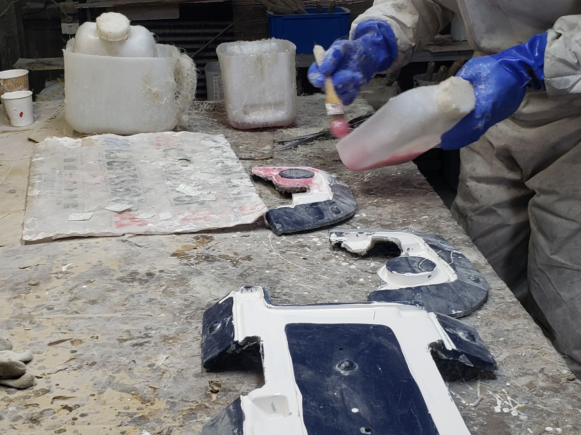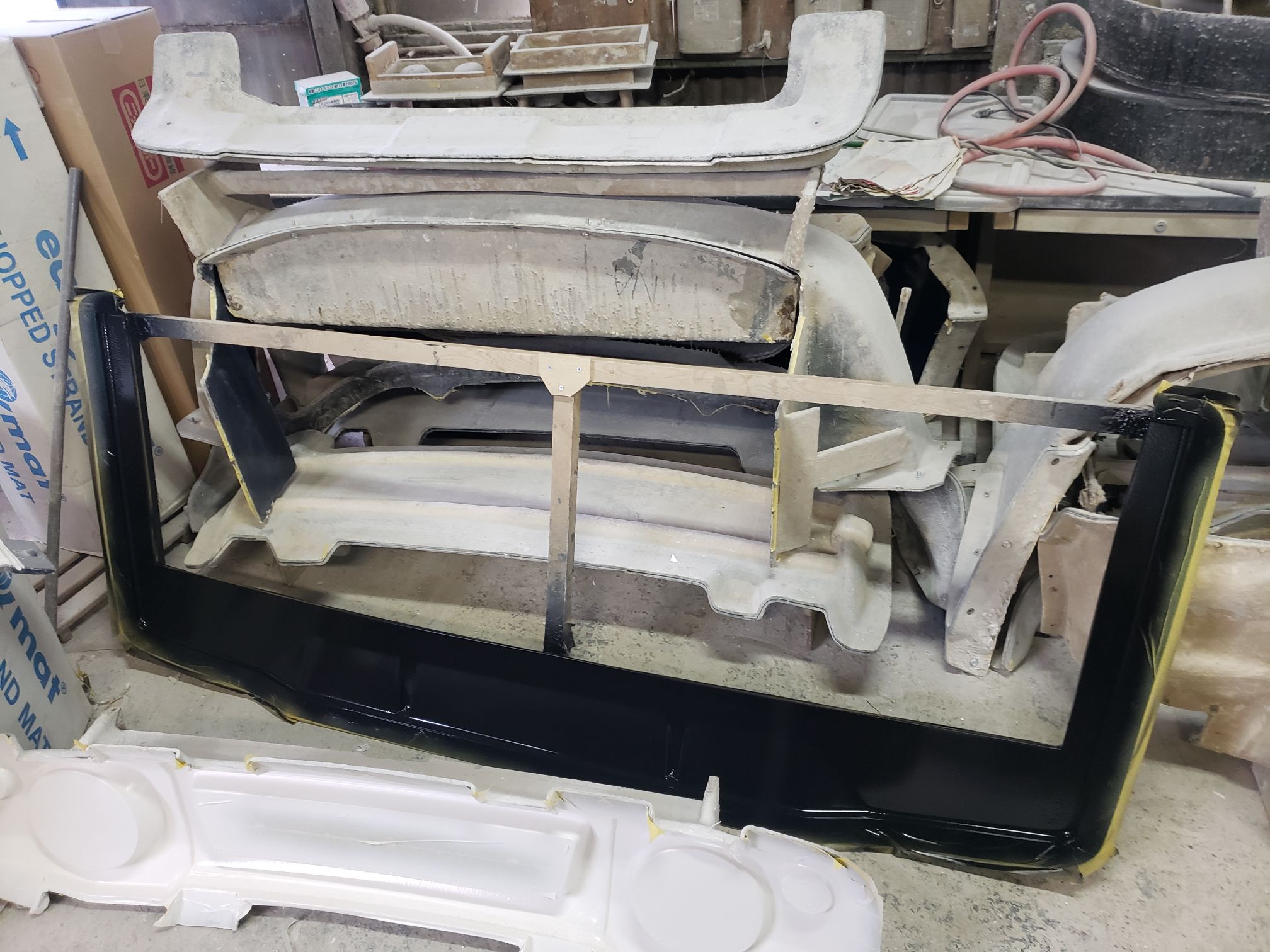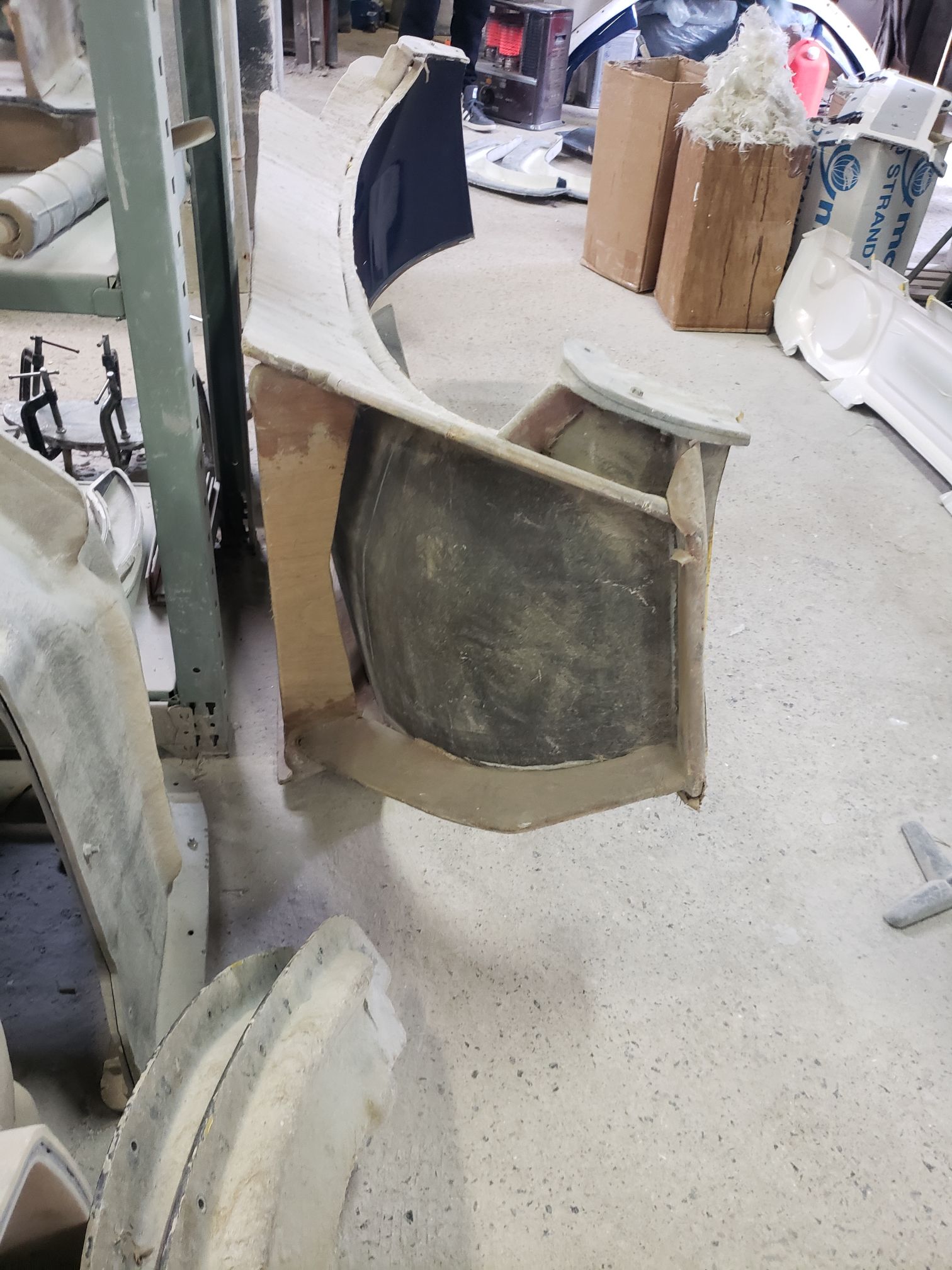 Ogawara-san drove to this location. It was right off the road and the you see what looks like a mid sized shack. The owner opens up the garage and it is a full fiberglassing operation!!!