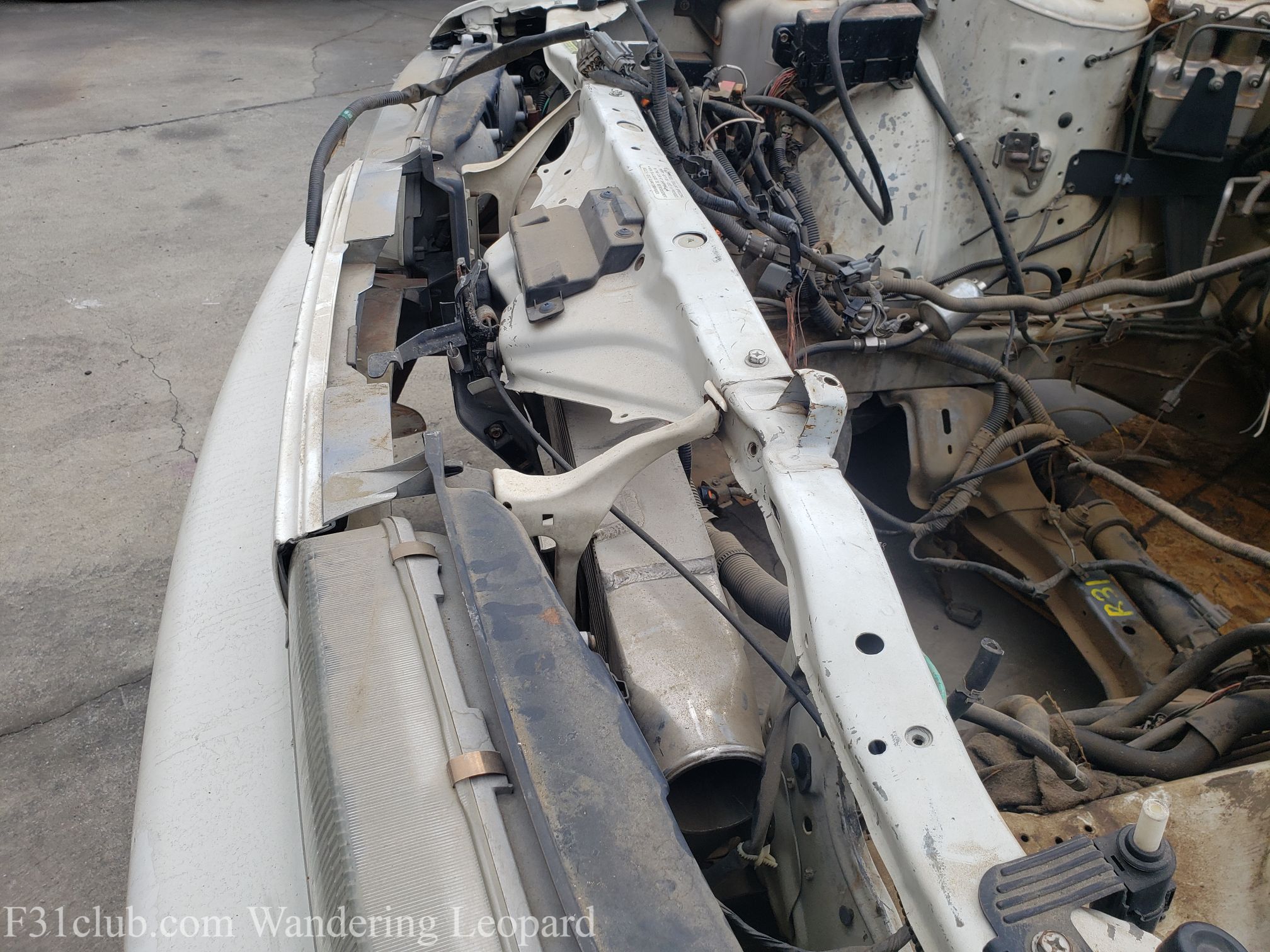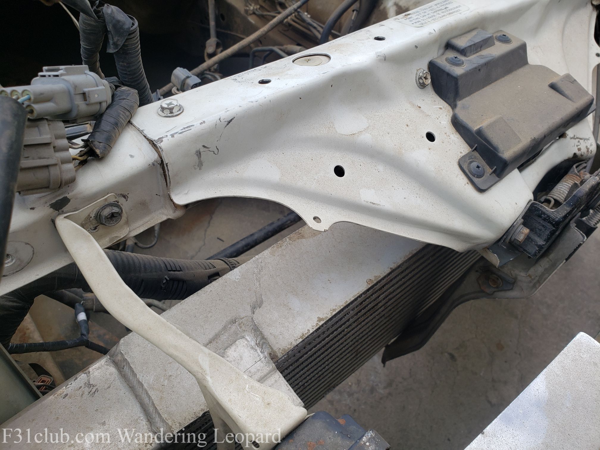 This also gave me an opportunity to look at for more parts issues. Example – tweaked radiator support and headlight bracket.