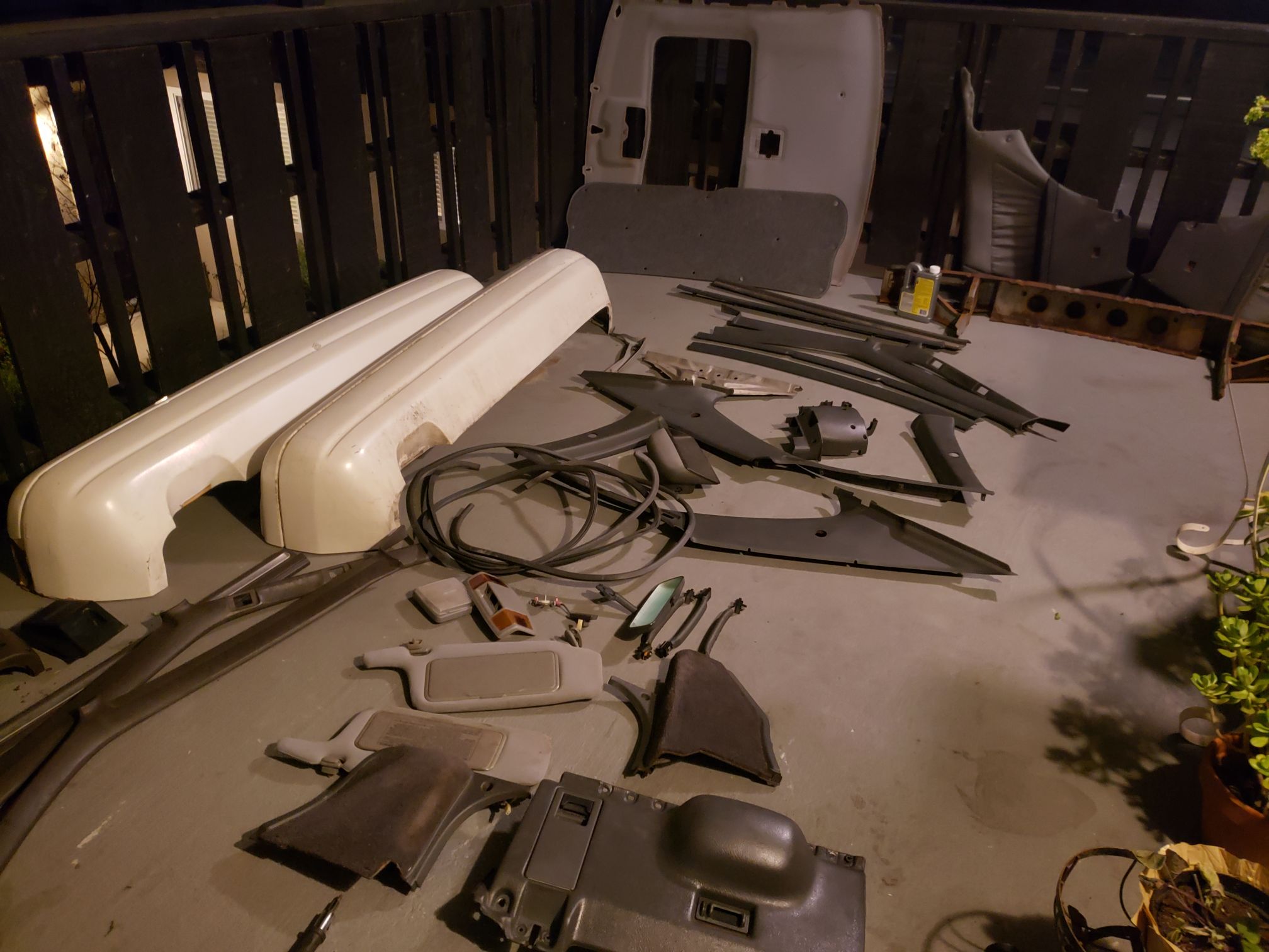 I loaded up the van with a lot of the brown trim. The next day, I was gonna load up the carpet and dash. I had this idea that while Marco worked on the engine, I would be able get the interior done in the bay area. I had to paint the interior trim to be dark grey and get the dash redone anyway.
