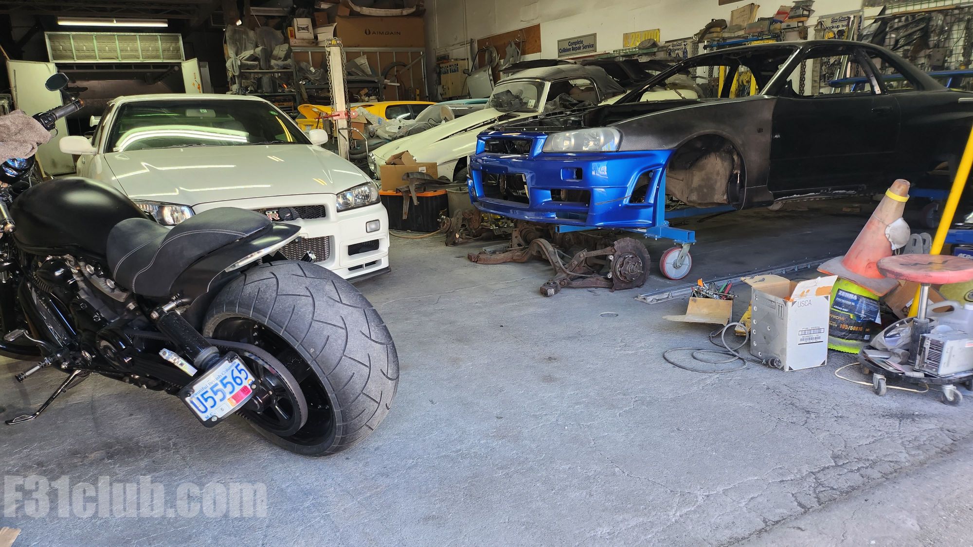 2 R34 Skylines. Blue one had a lot of new panels and parts.
