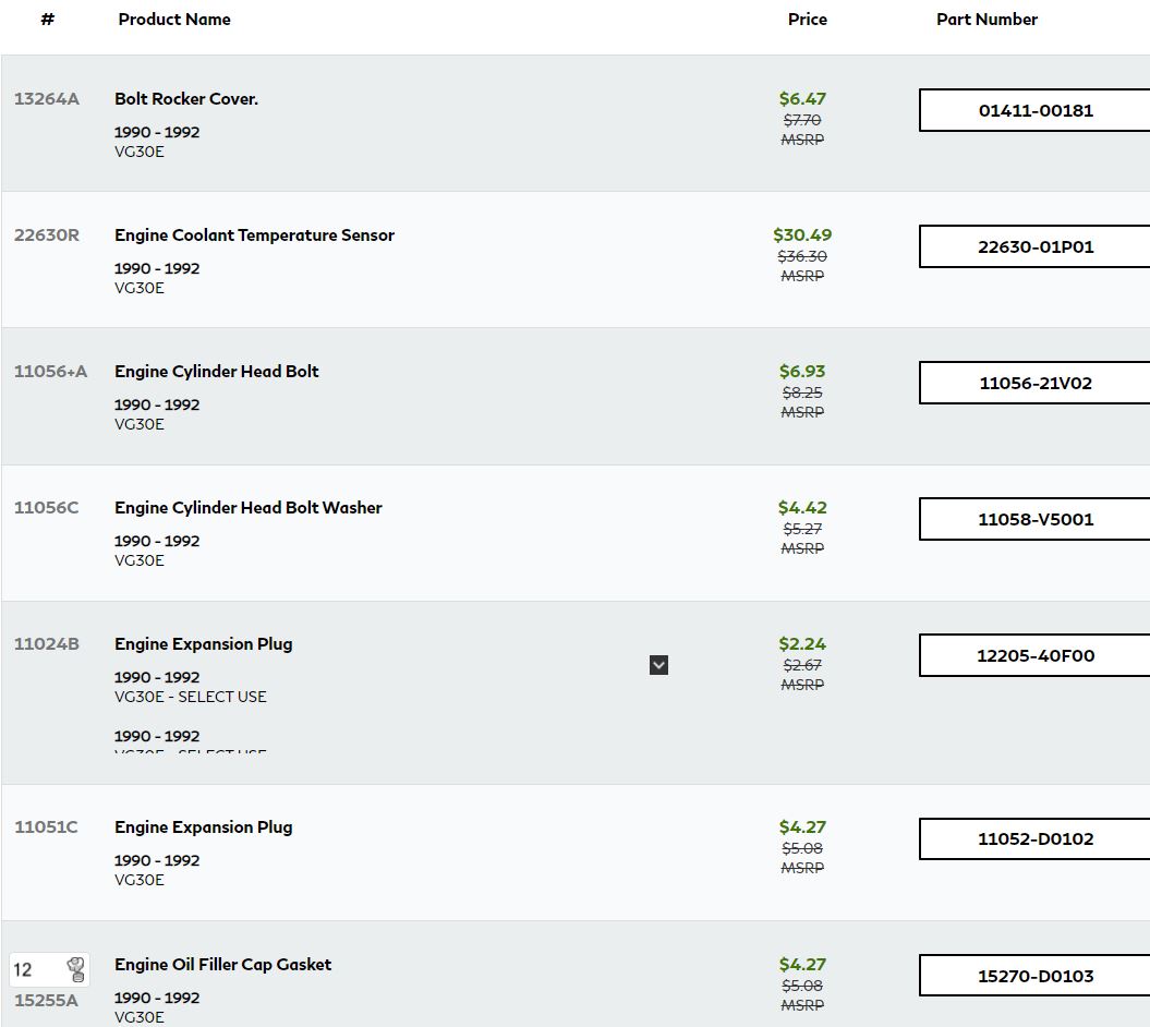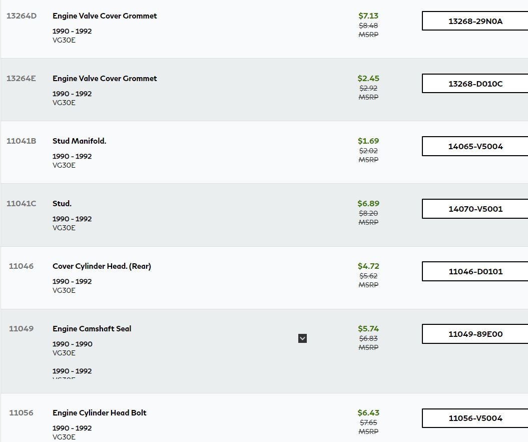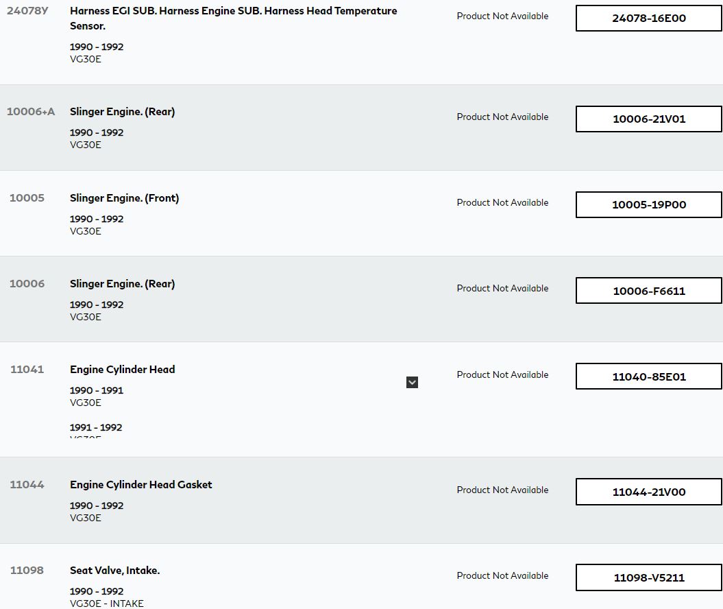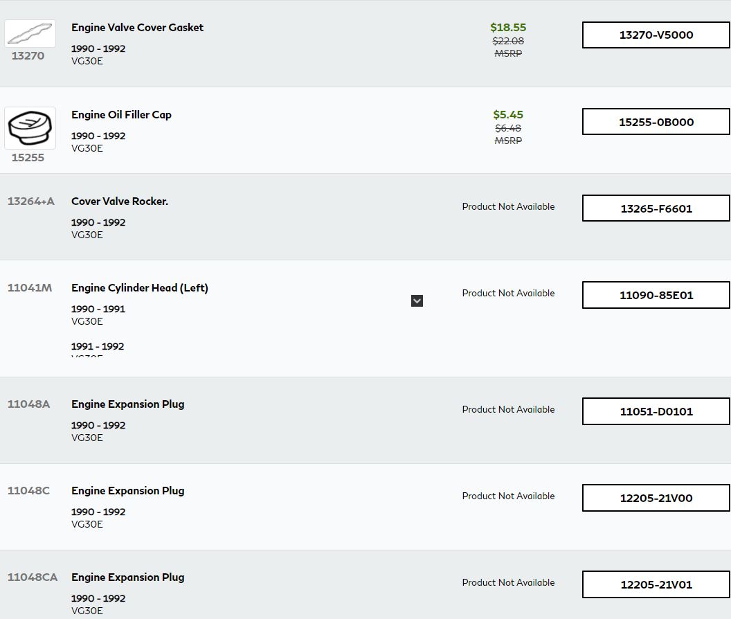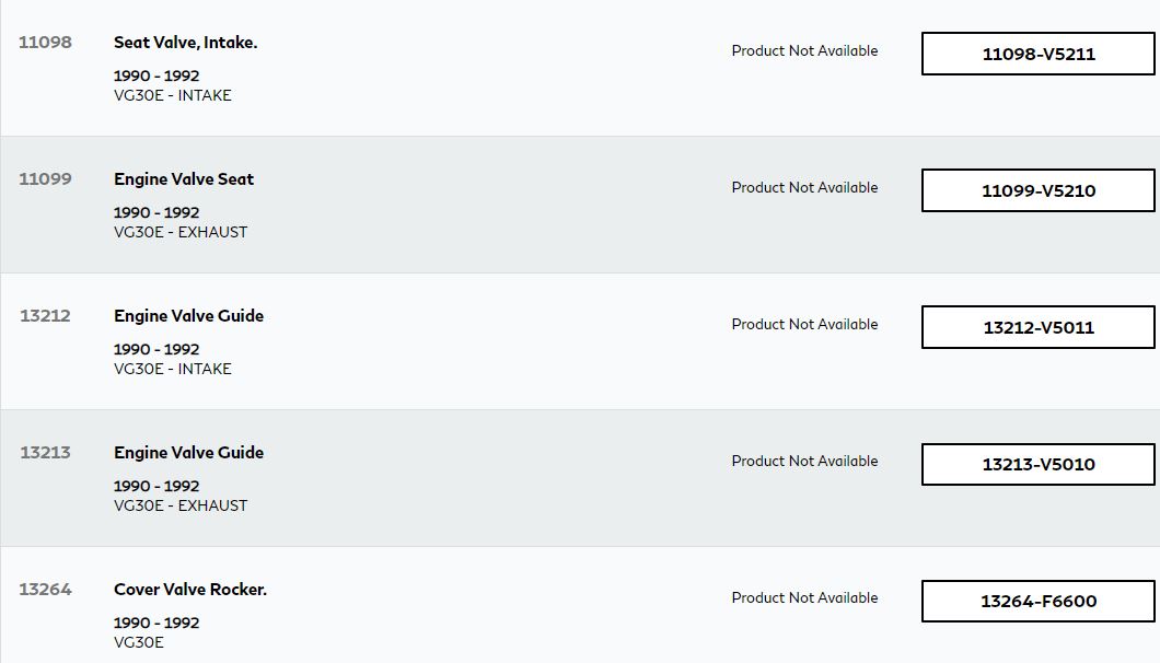 Reference – VG30E Cylinder head and Rocker Cover